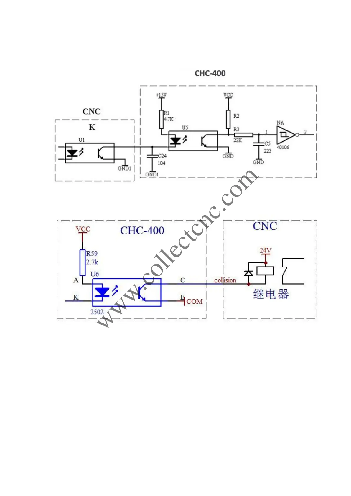 CHC-400 to CNC (X1-CNC), input/output both use optical isolation, UP/DOWN/AUTO is