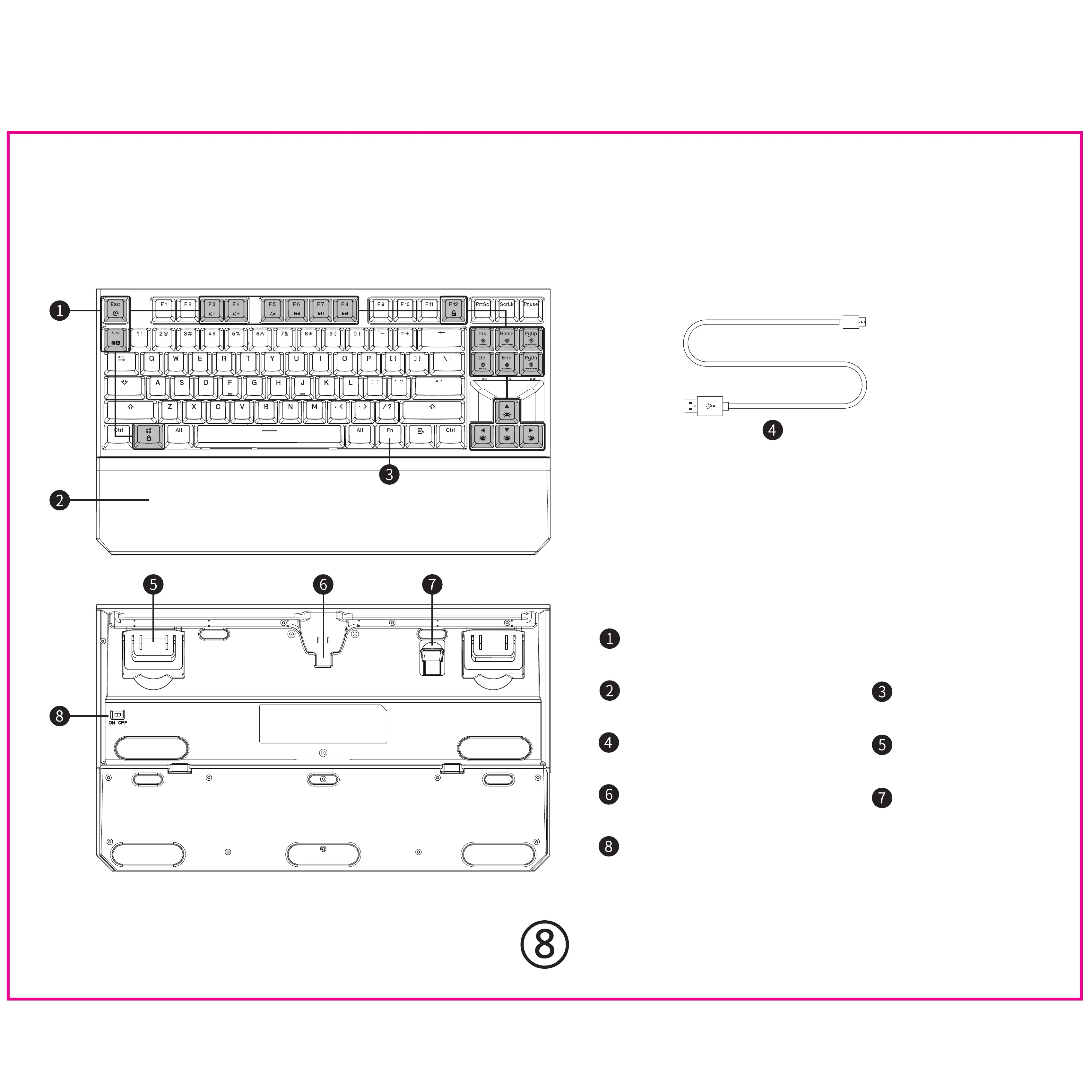 HYEKU X3 - Product Introduction and Components; Keyboard Layout and Function Keys Overview; Included Accessories and Parts Identification; Power Switch and Interface Port Locations