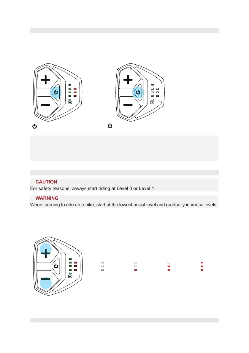 When learning to ride an e-bike, start at the lowest assist level and gradually increase levels.