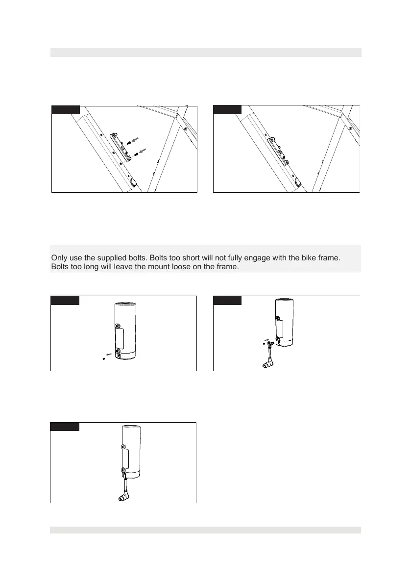 Only use the supplied bolts. Bolts too short will not fully engage with the bike frame.