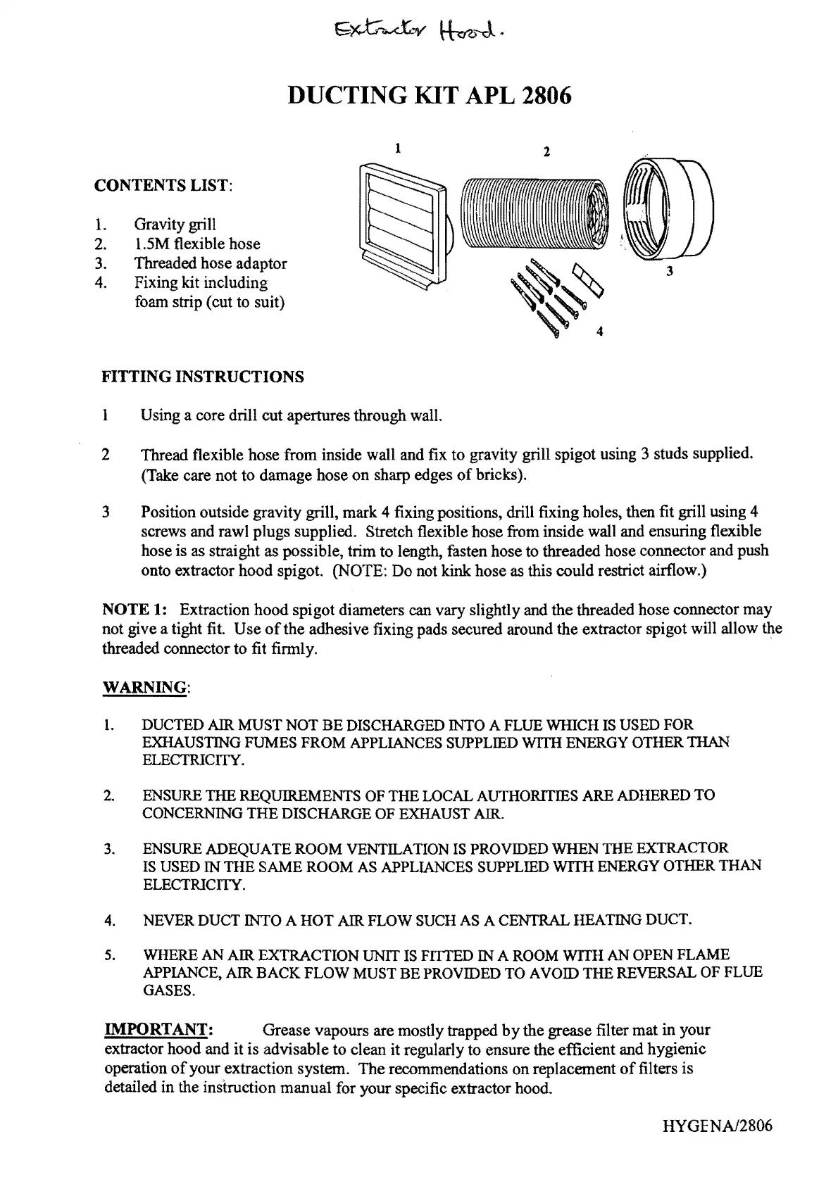 extractor hood and it is advisable to clean it regularly to ensure the efficient and hygienic