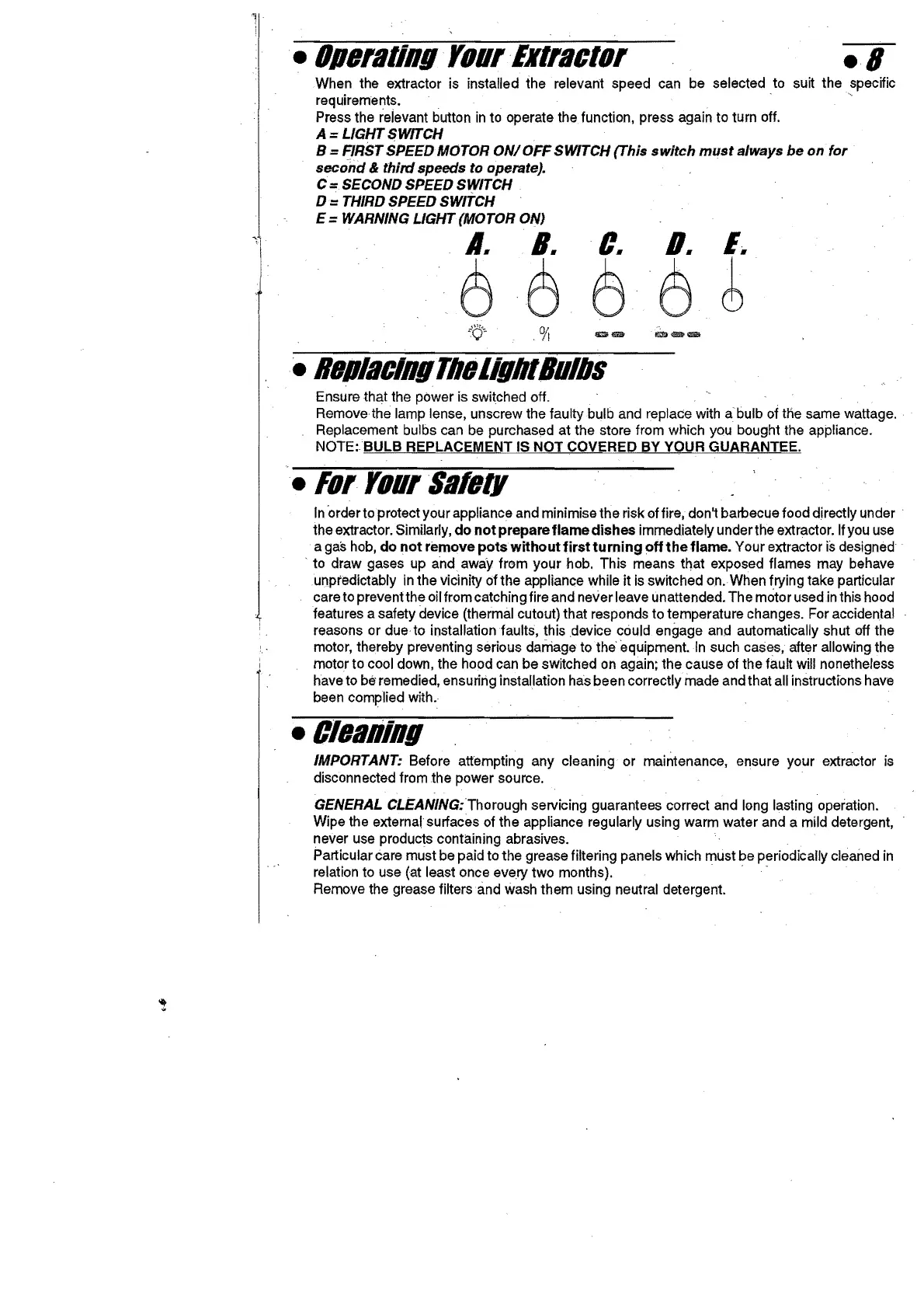 Particular care must be paid to the grease filtering panels which must be periodically cleaned