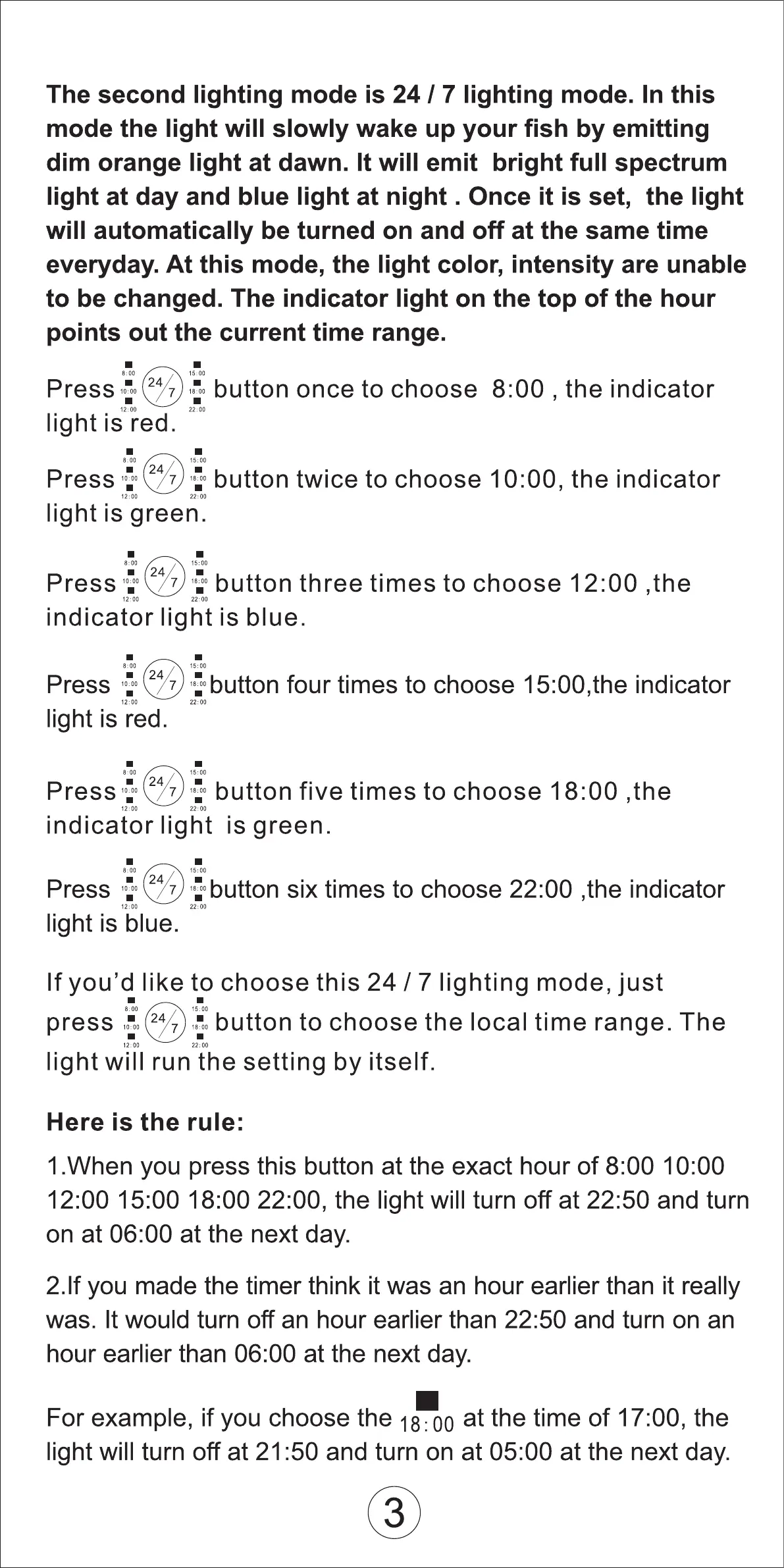 12:00 15:00 18:00 22:00, the light will turn off at 22:50 and turn