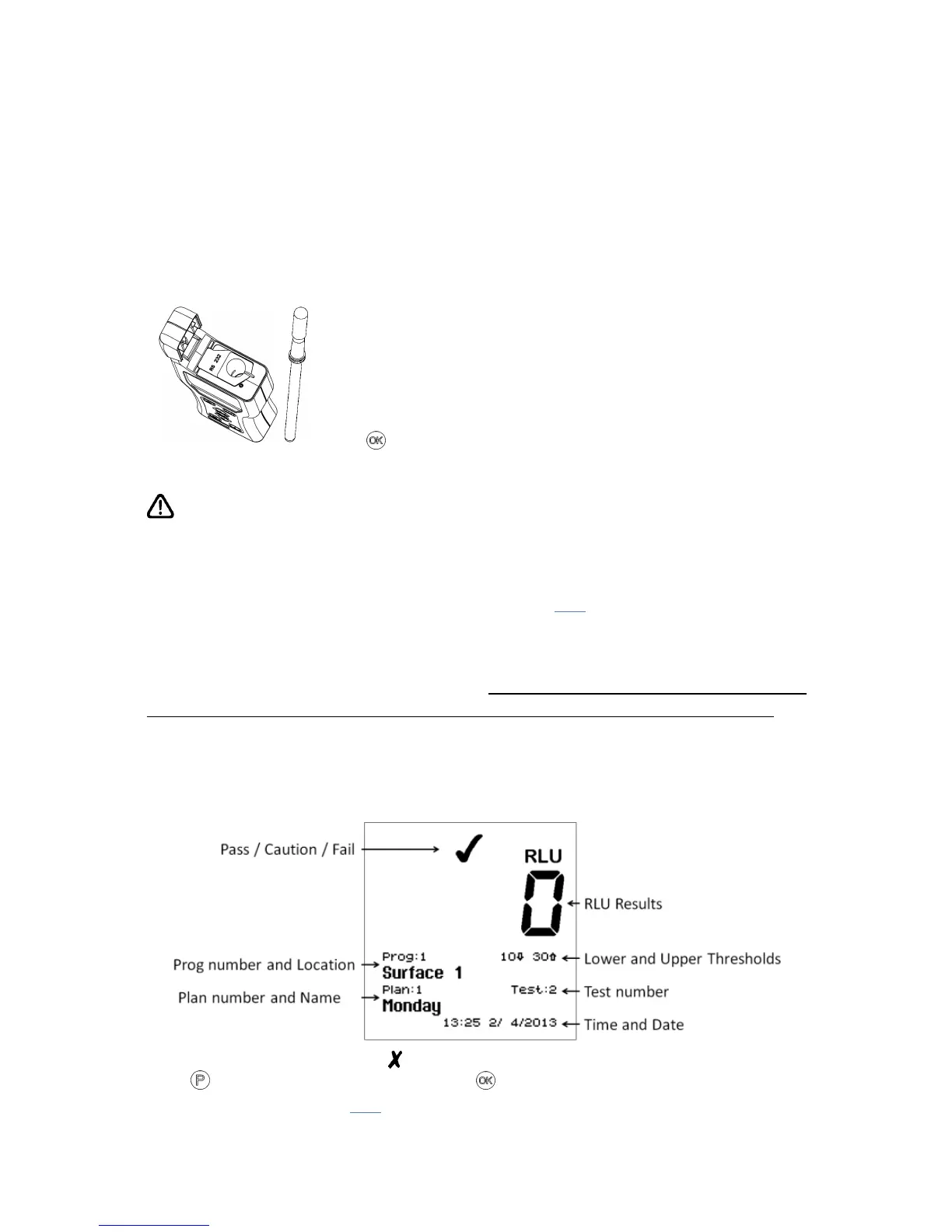 When the measurement is complete, the RLU test result and overall