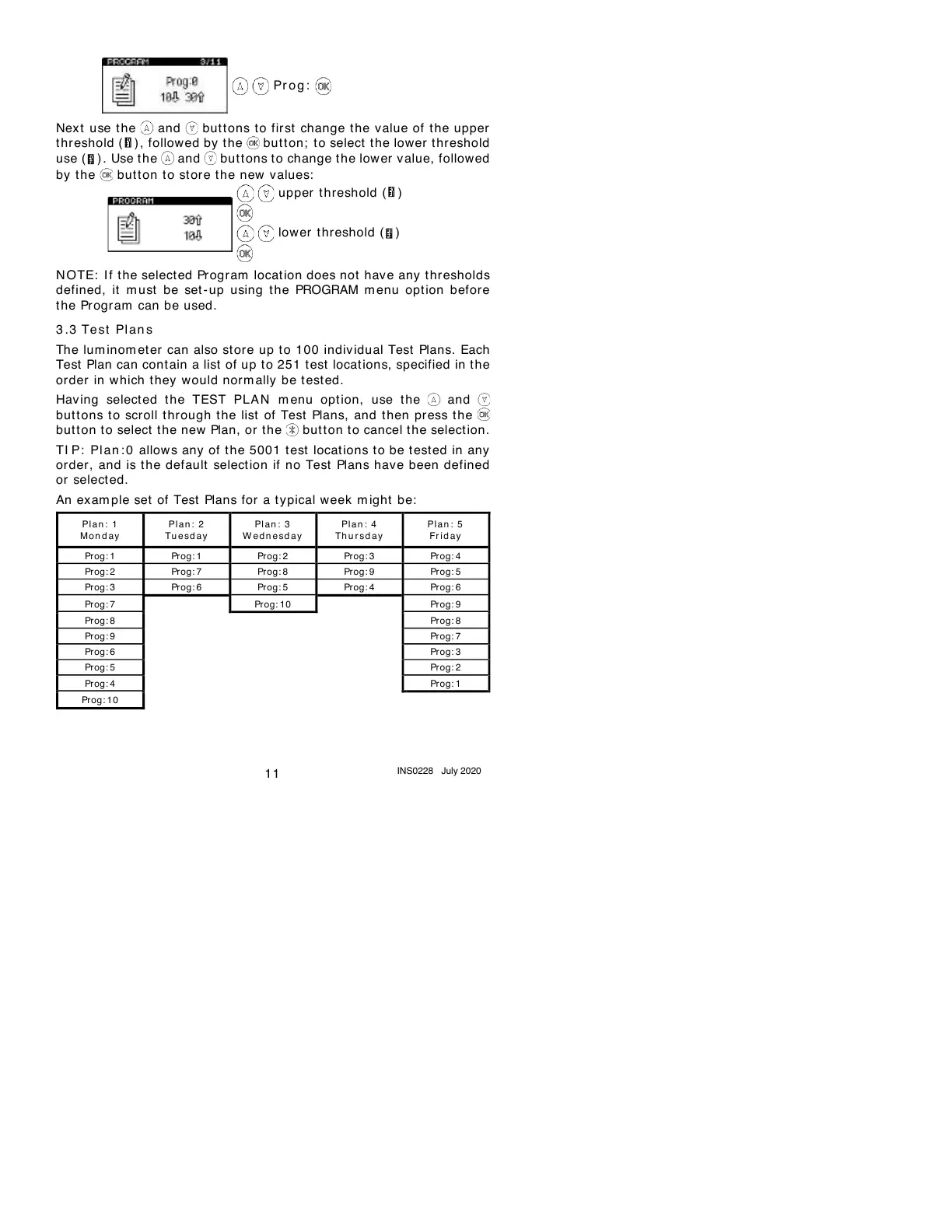 The lum inom et er can also st ore up t o 100 individual Test Plans. Each