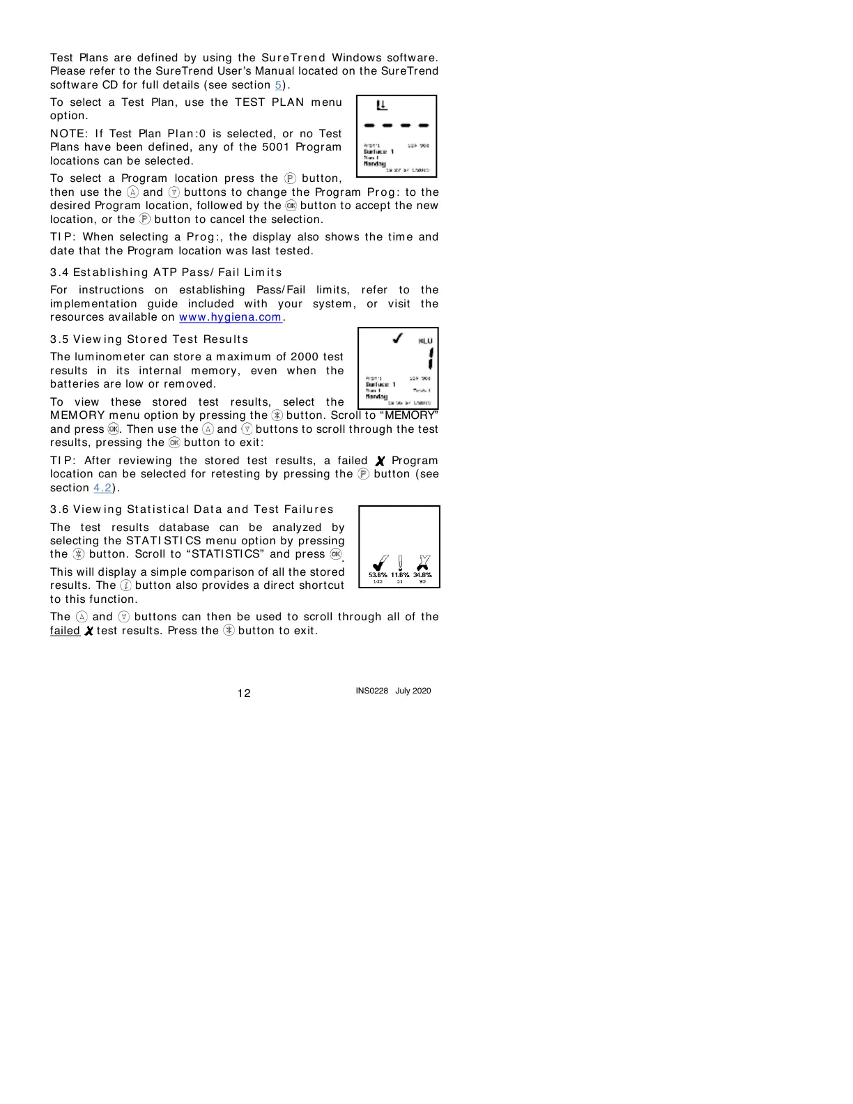 To view t hese stored test result s, select the