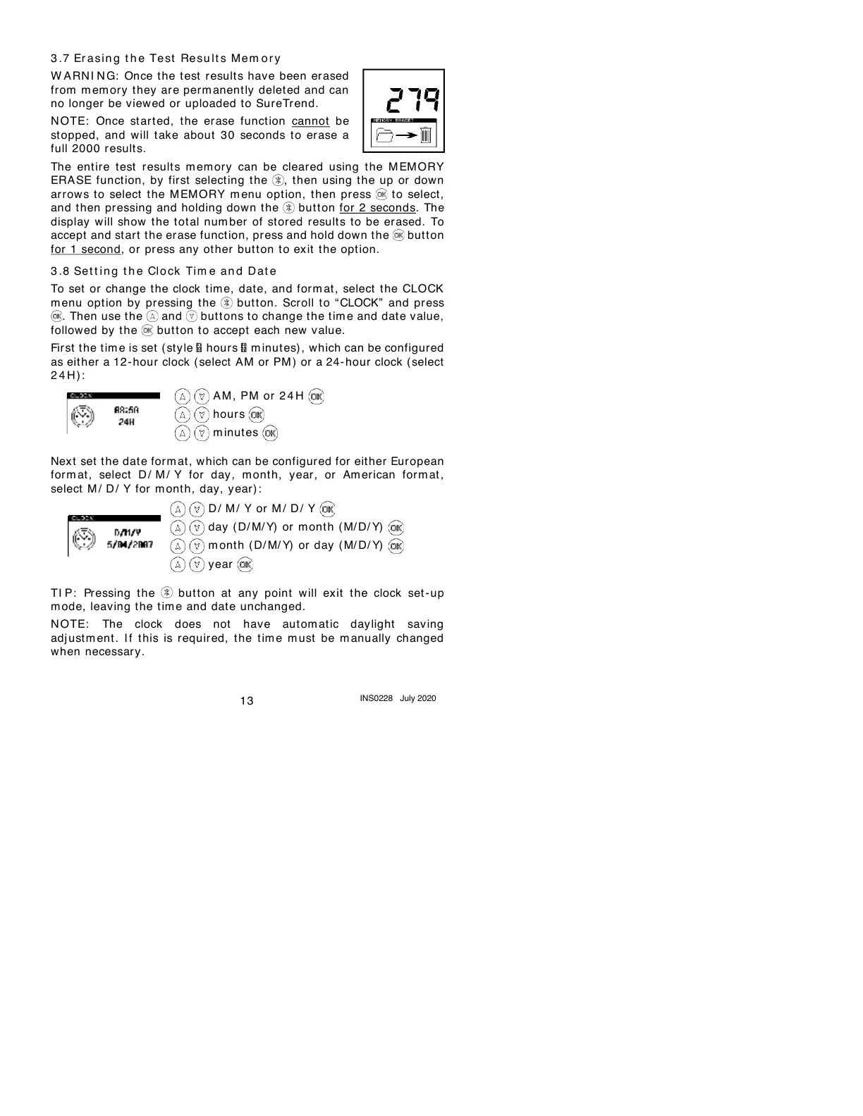 The ent ir e t est result s m em ory can be cleared using the M EM ORY