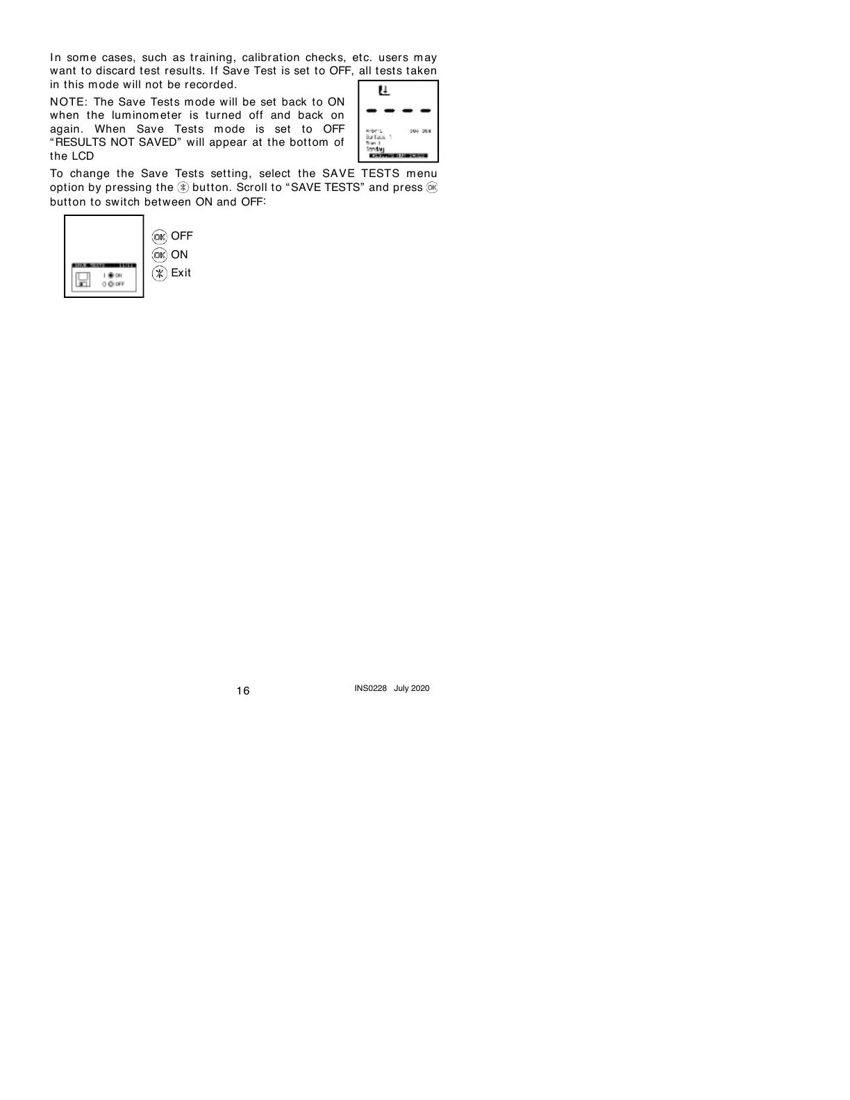 option by pressing the but t on. Scroll t o “ SAVE TESTS” and press