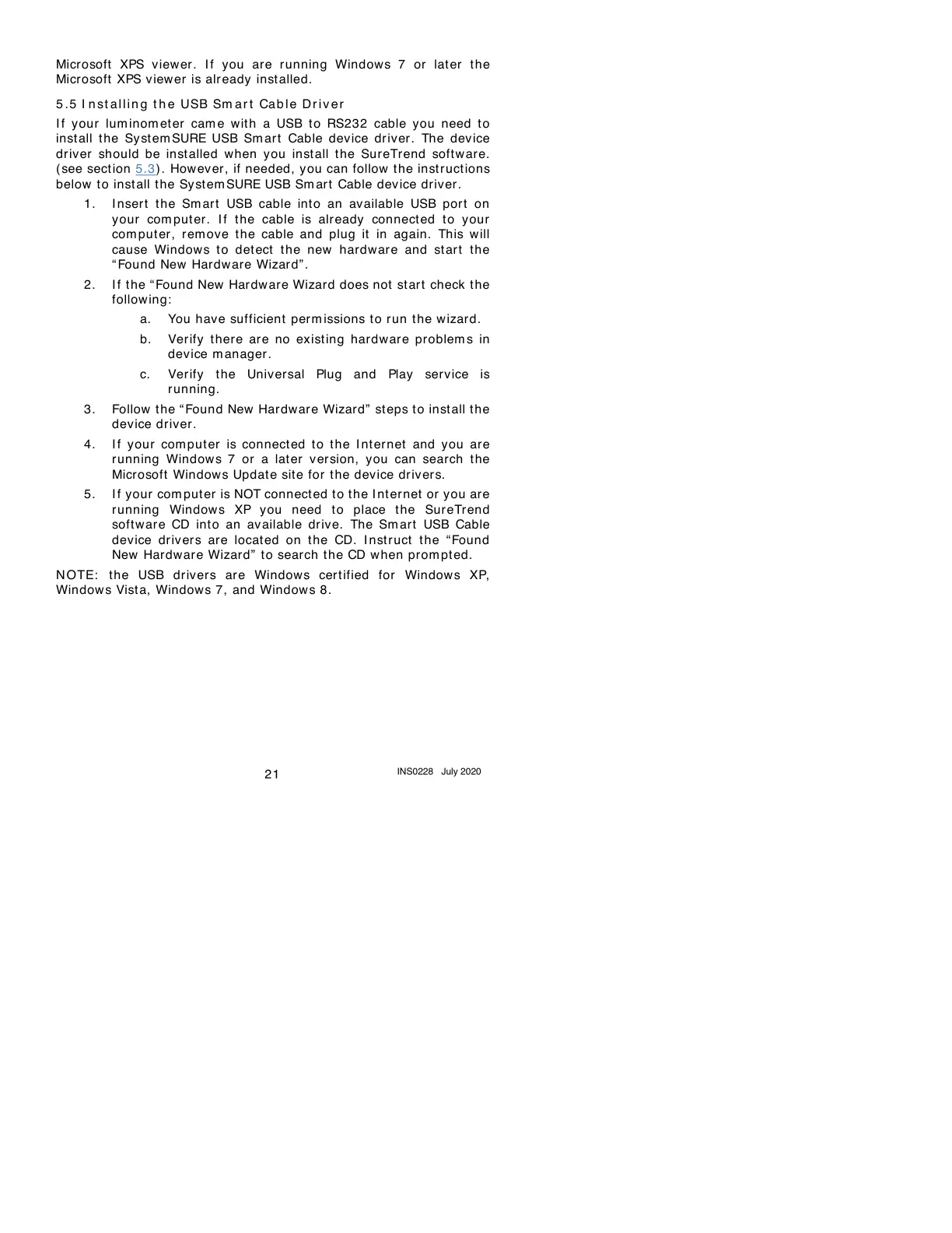 install t he System SURE USB Sm ar t Cable device driver. The device