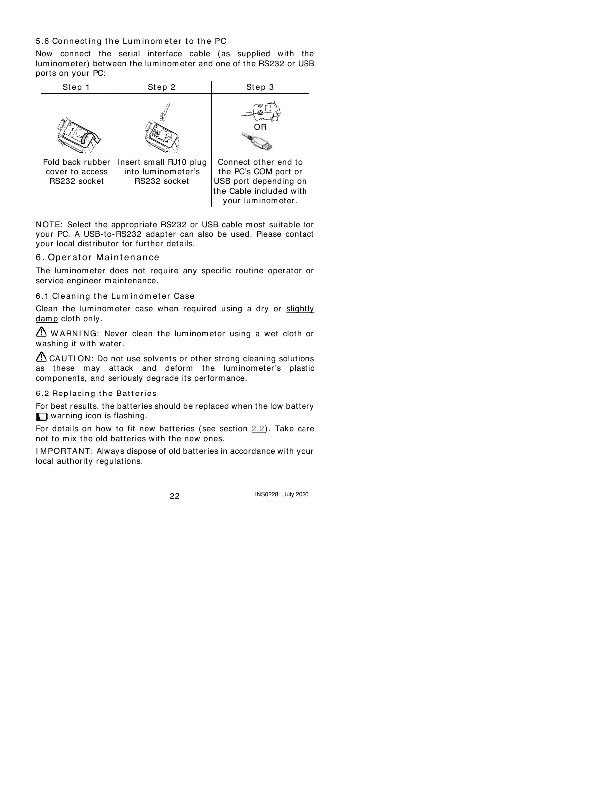 Co n n ect i n g t h e Lu m in o m et e r t o t h e PC