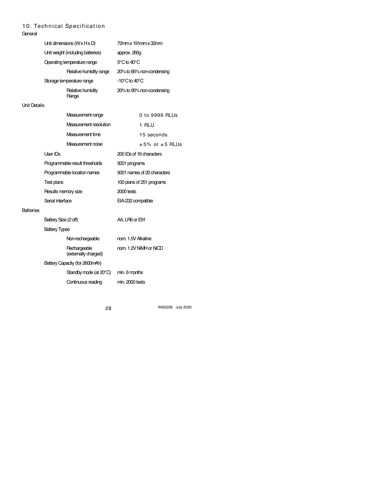 Hygiena SystemSURE Plus - 10. Technical Specification