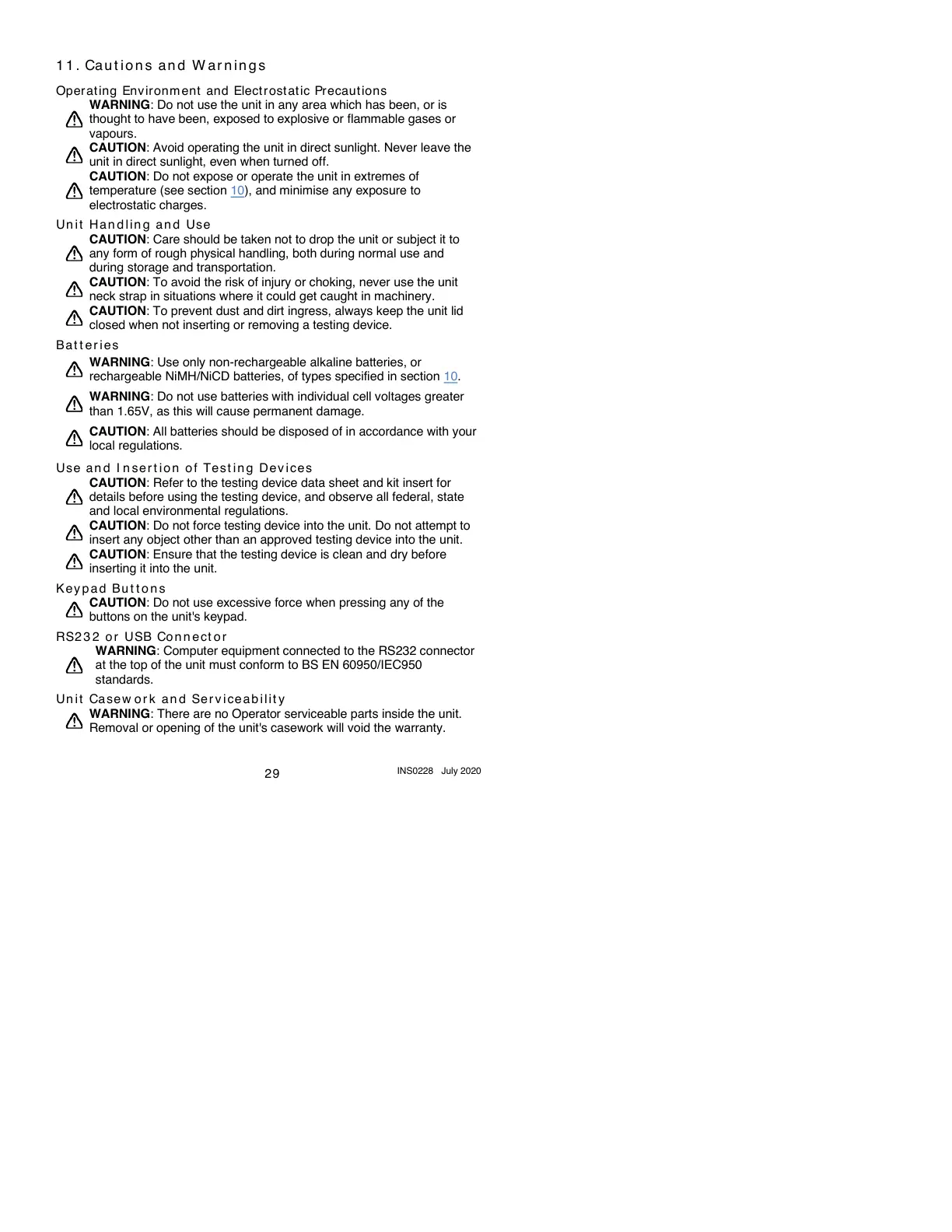 Hygiena SystemSURE Plus - 11. Cautions and Warnings