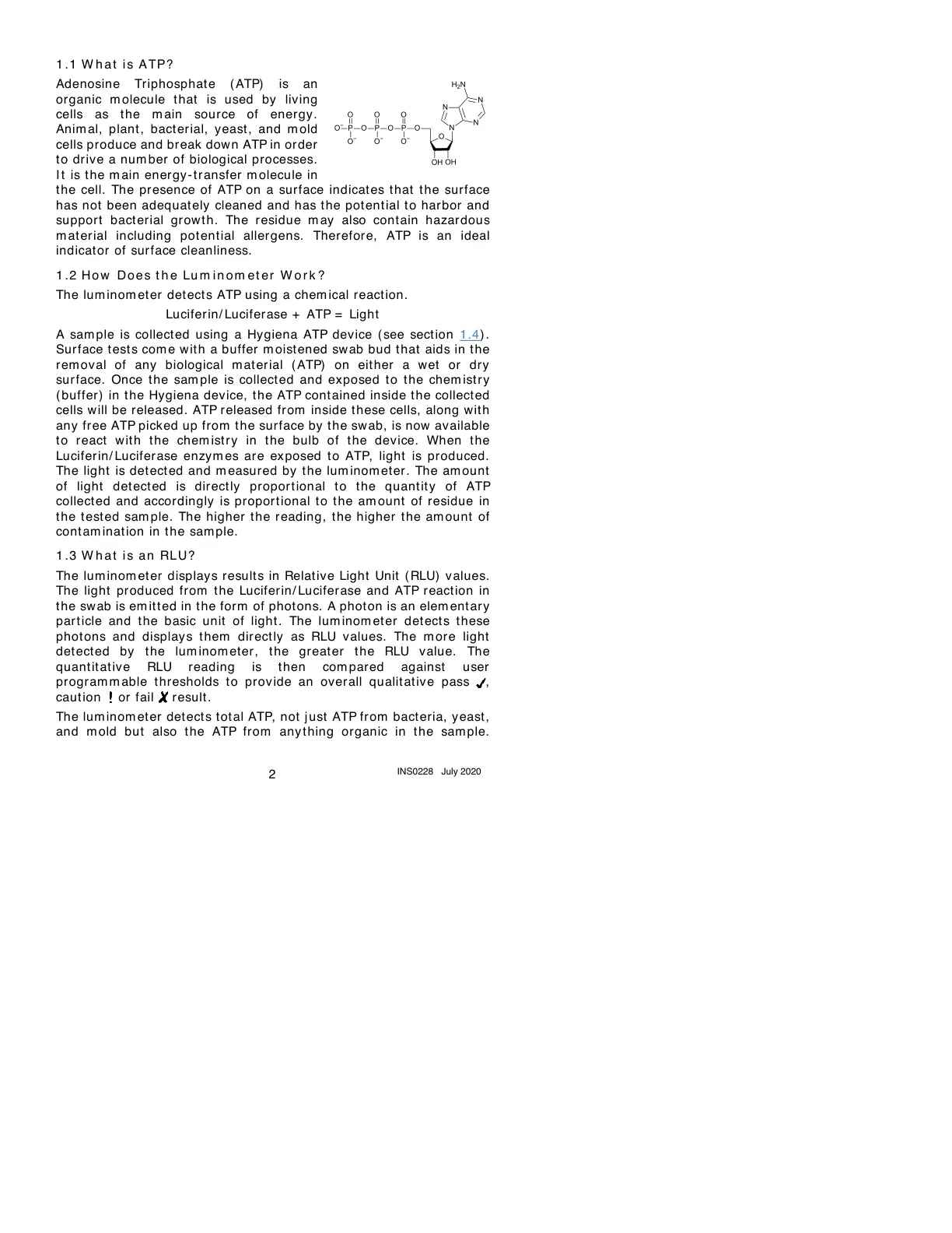 A sam ple is collect ed using a Hygiena ATP device ( see section 1.4).