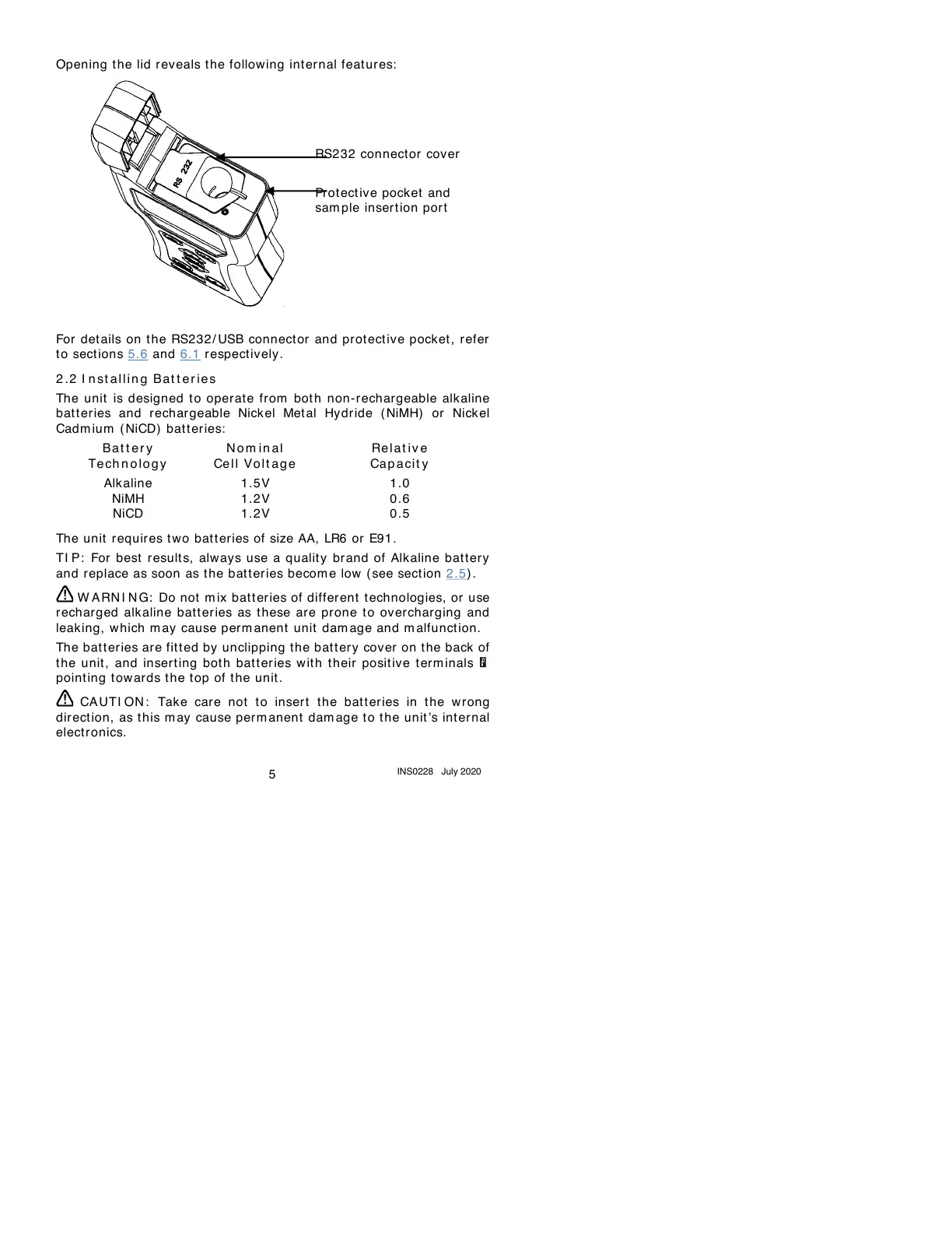 and replace as soon as the bat t eries becom e low (see sect ion 2.5) .