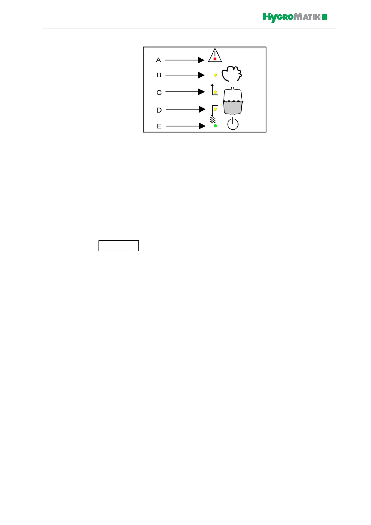 E: LED steady = ready; LED blinking = maintenance interval