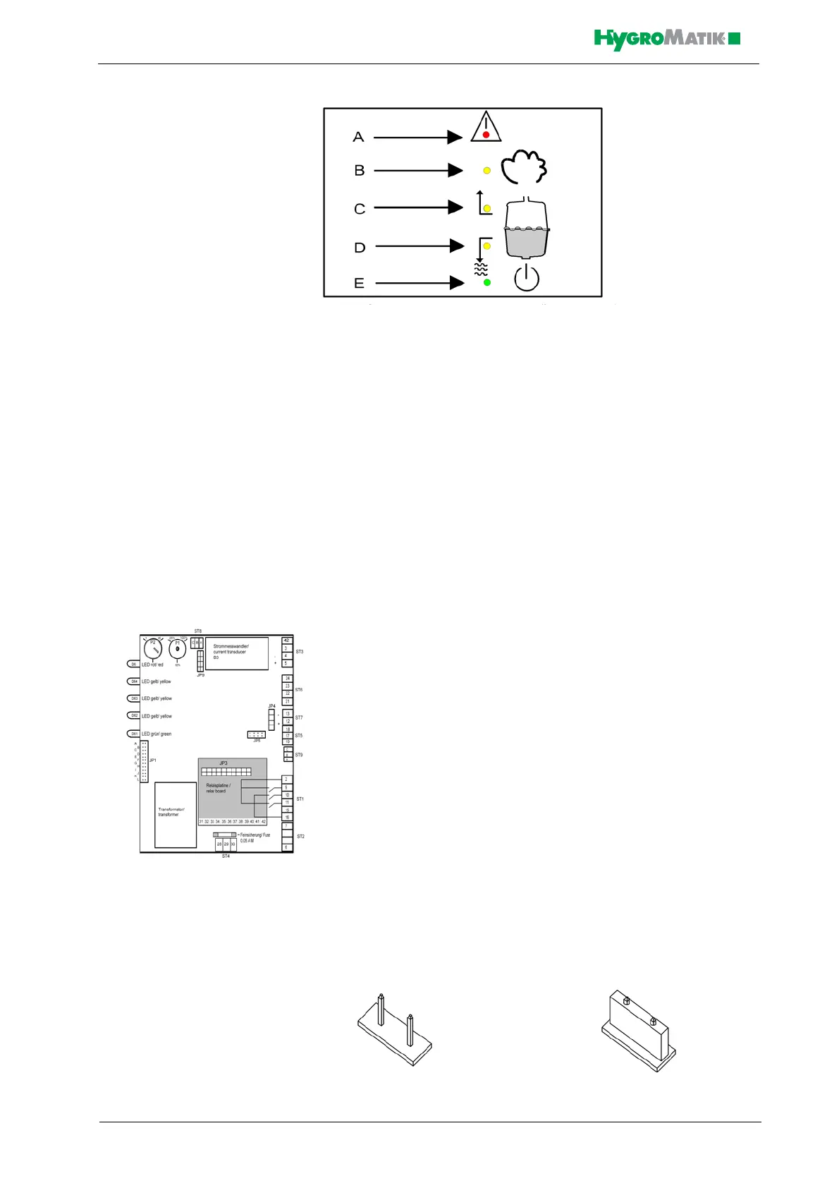 The red LED A blinks to indicate a humidifier malfunction. The humidi-