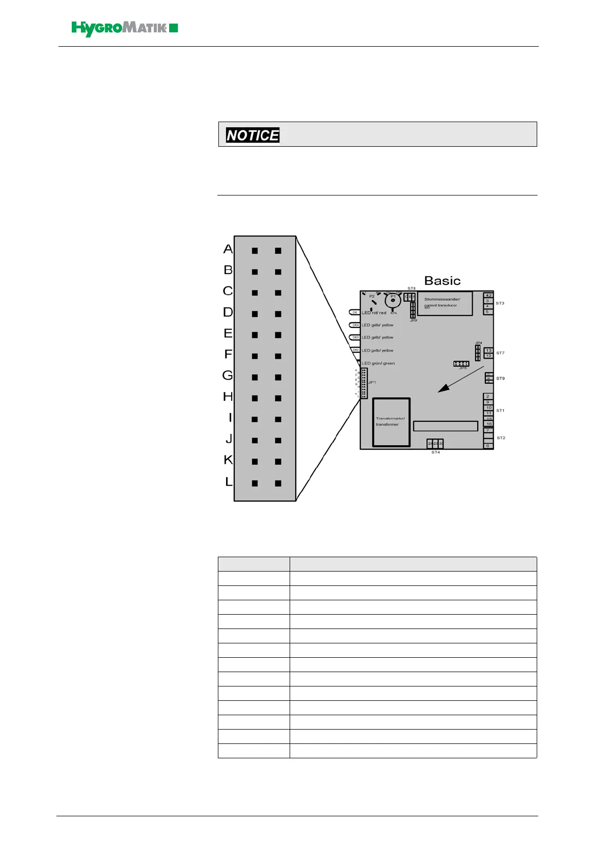 The jumper strip JP1 has 12 jumper positions, designated by the let-