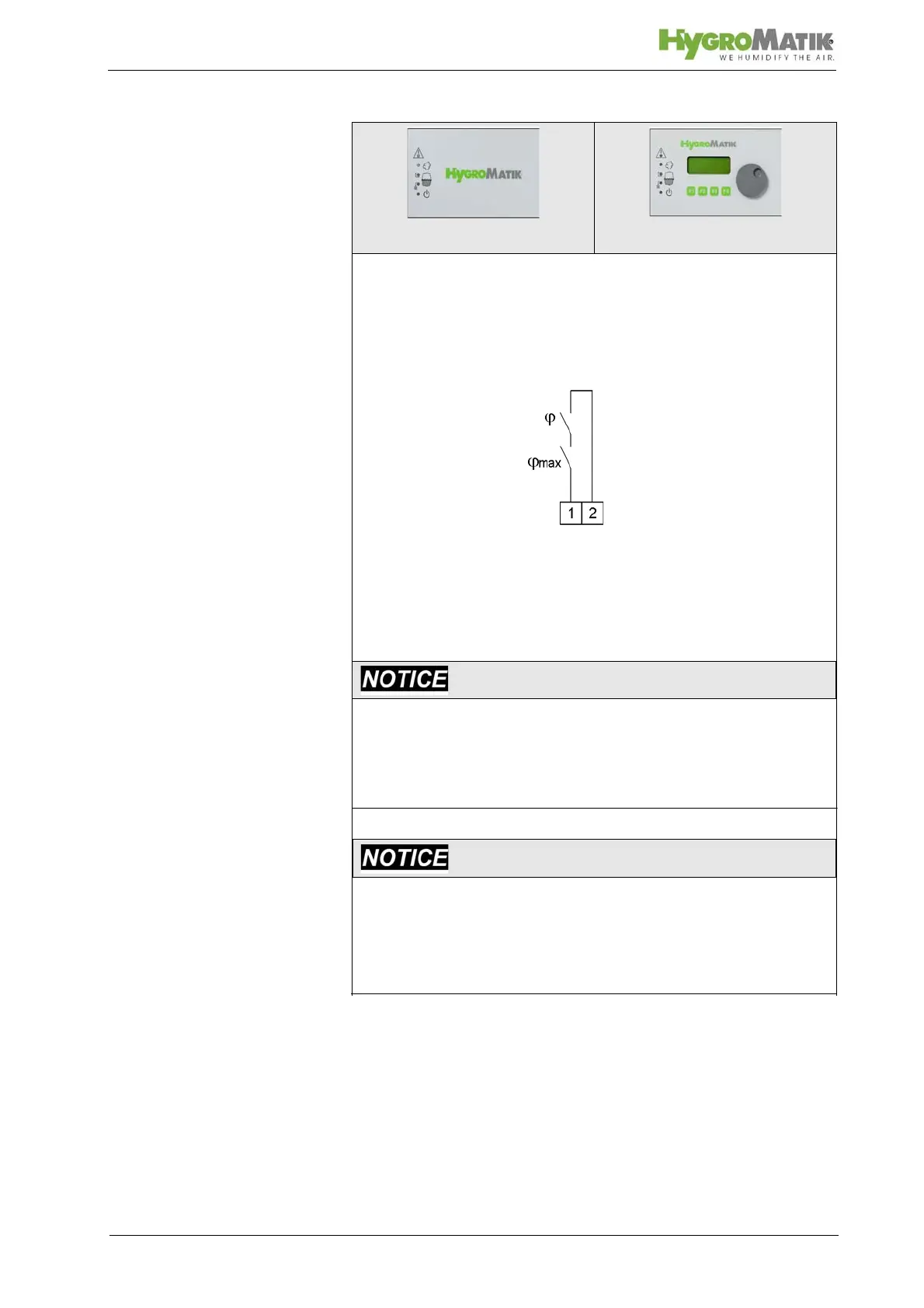 Every HygroMatik humidifer is equipped with terminals 1 and 2.
