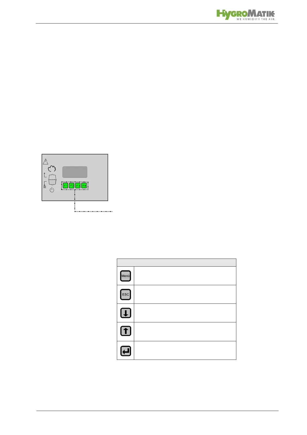 Keys F1 to F4 are located below the display. Above each key, a