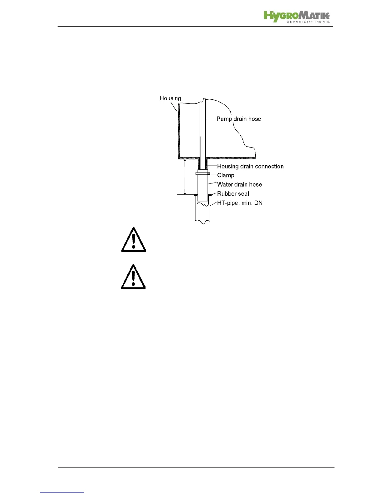 water drain hose. Humidifier and wastewater discharge must be
