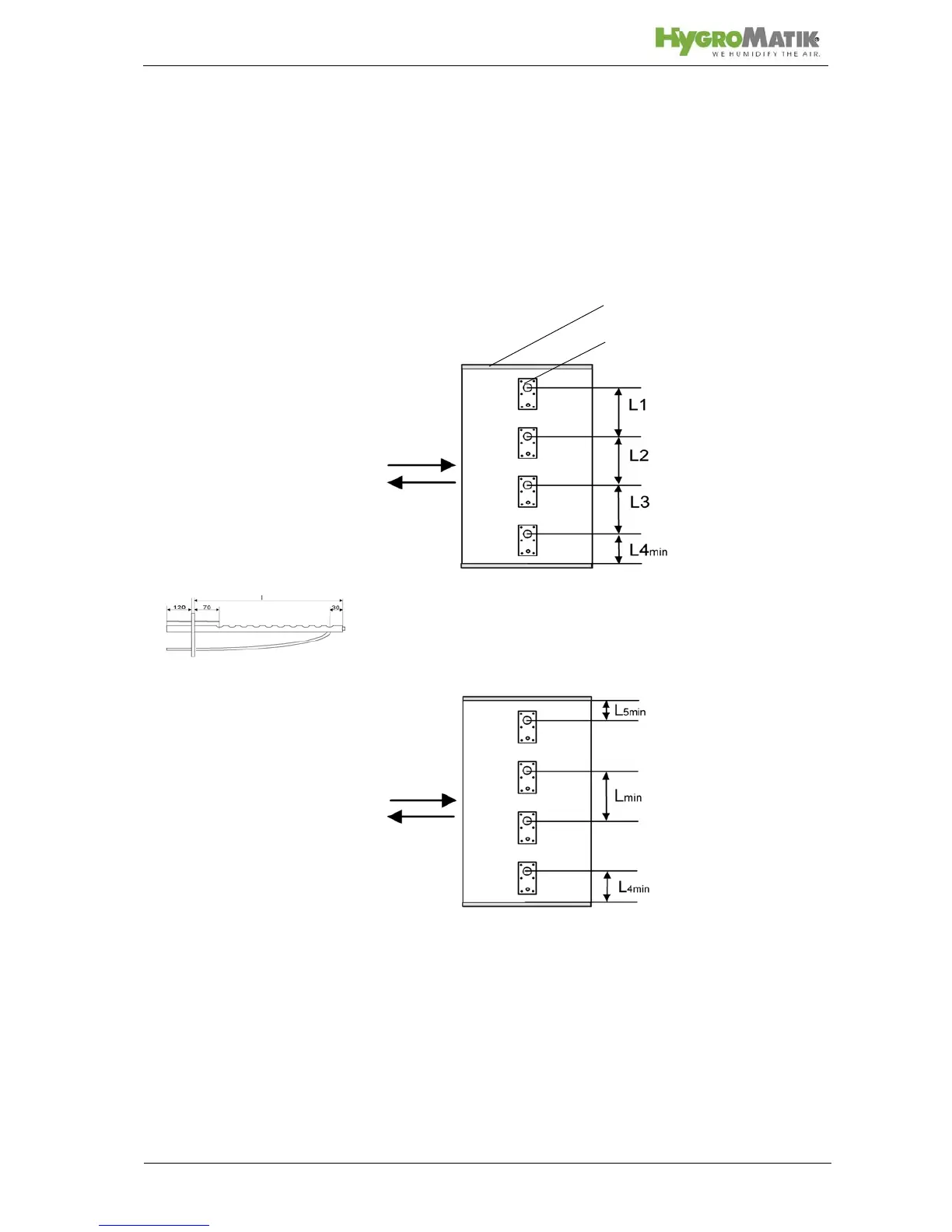 min = 120mm: distance „lowest steam manifold - duct bot-