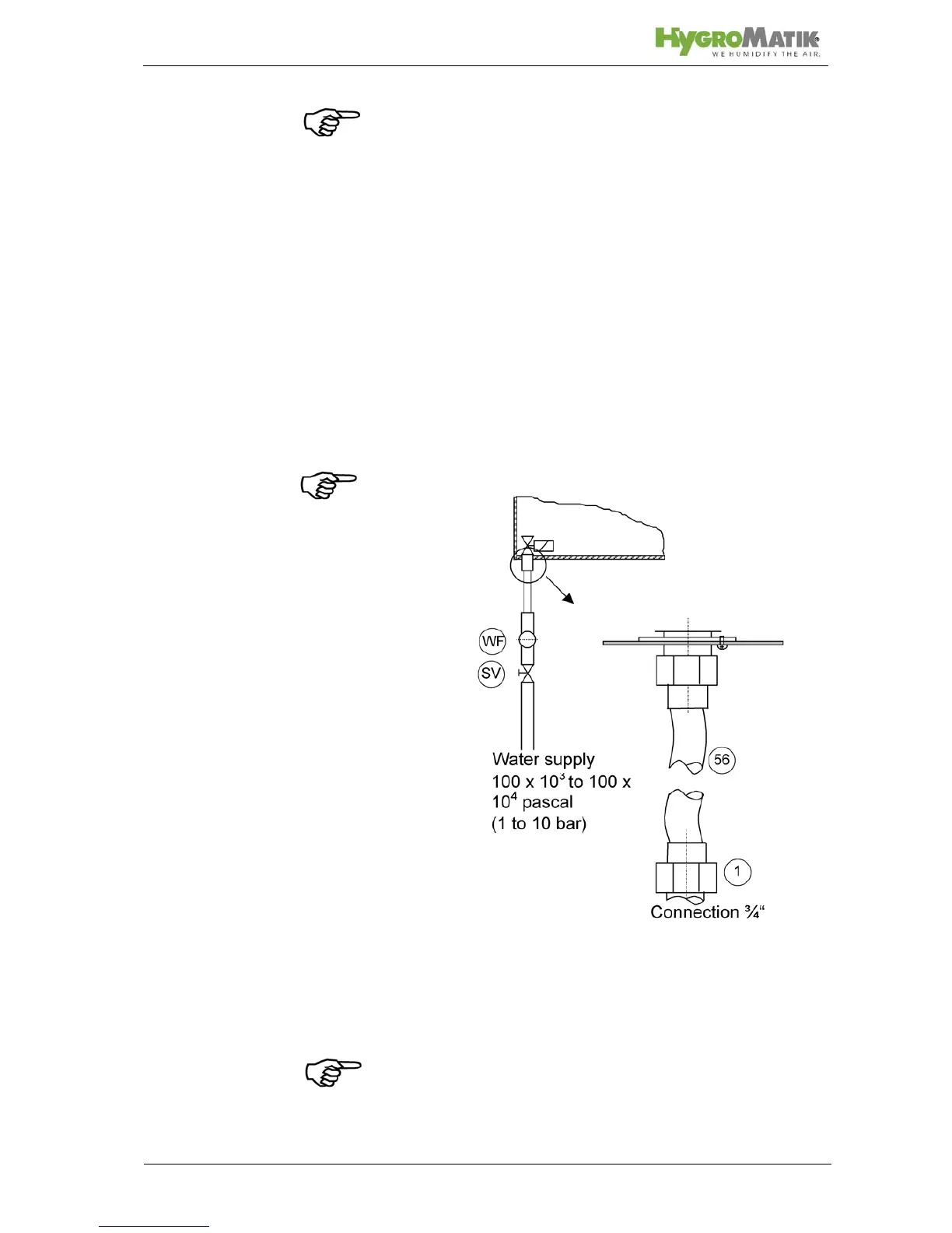 Note: Shut-off valve (SV) and water filter (WF) are not supplied