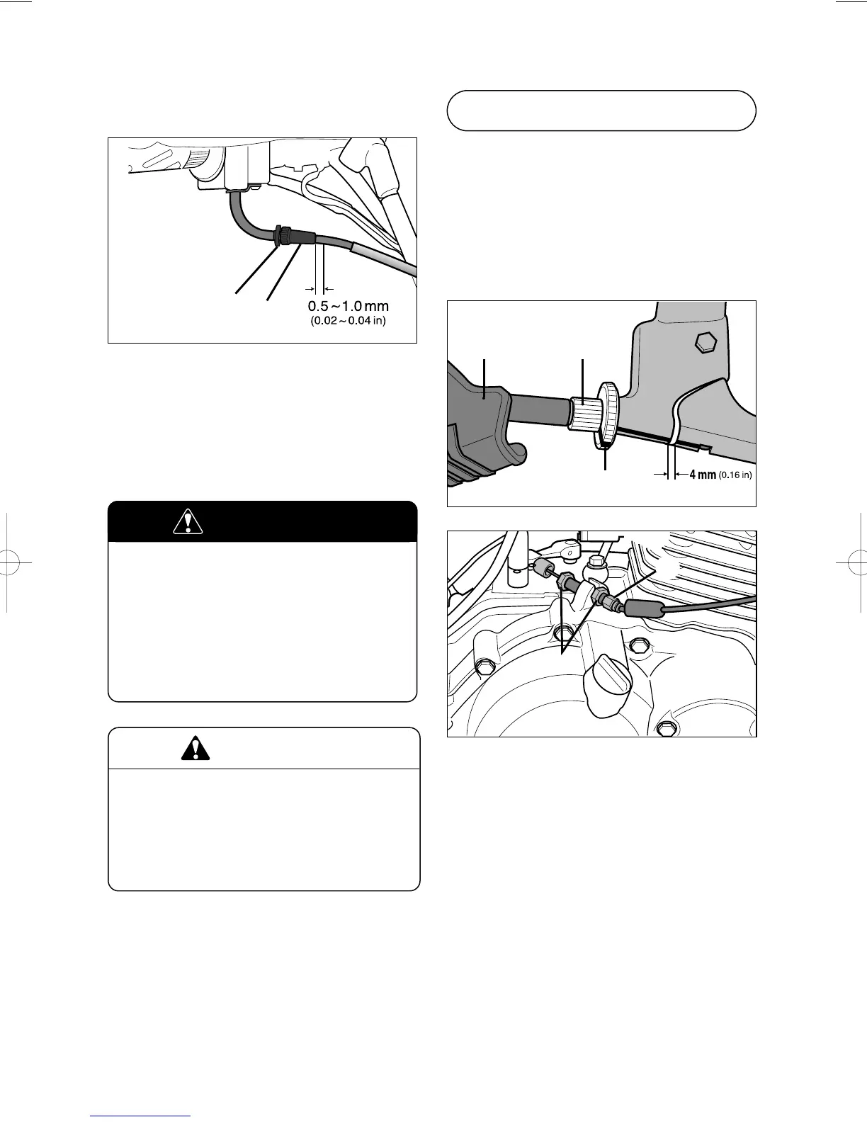 The cable play should be 4 mm (0.16 in)