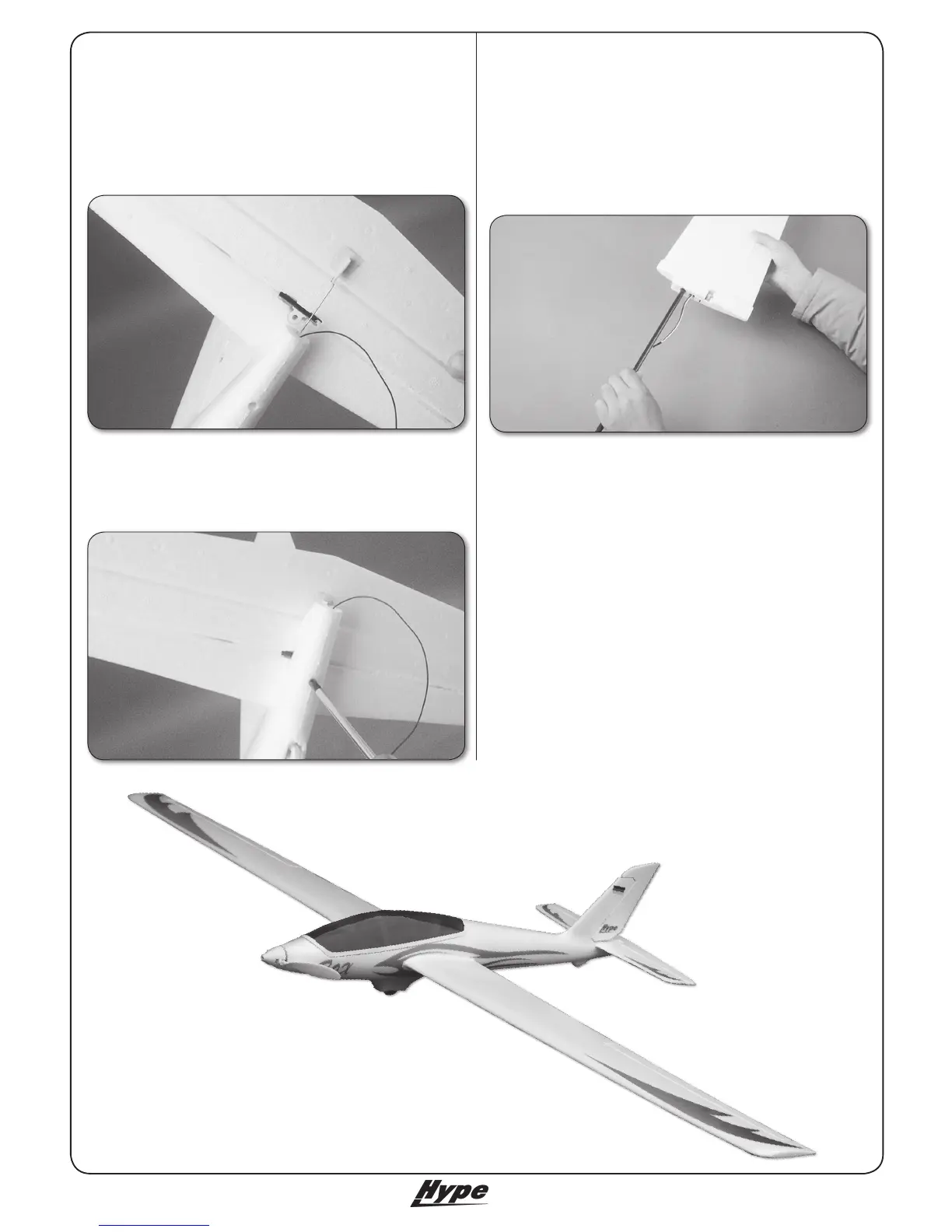 auf das Kohlefaserrohr im Flügel, wie dargestellt. Einbau-