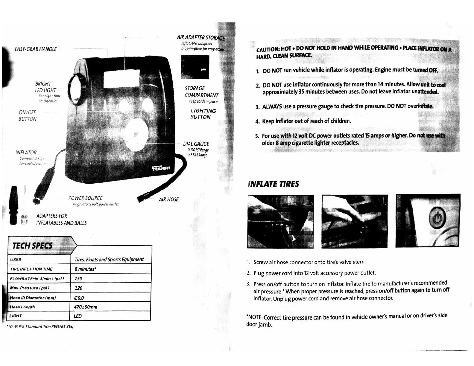 Hyper Tough 10774211 - Safe Operation and Precautions; Safe Usage Guidelines; Inflation Procedure and Specifications; How to Inflate Tires