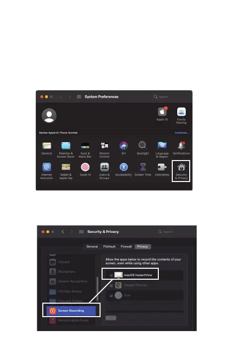 “macOS InstantView” is selected under “Screen Recording.”