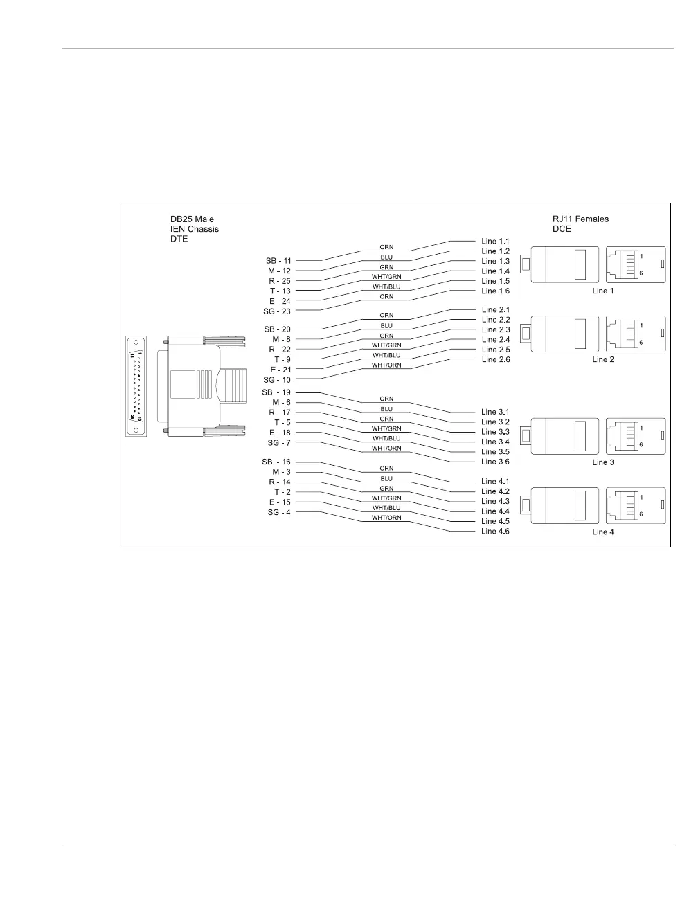 Figure 4-3 illustrates the pinout for the Type ALG-2W cable.