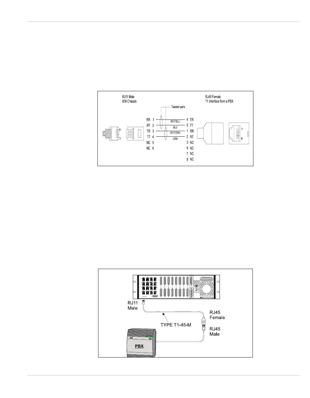 male RJ45 T1 termination from a PBX. Figure 4-39 illustrates the cable connection for the
