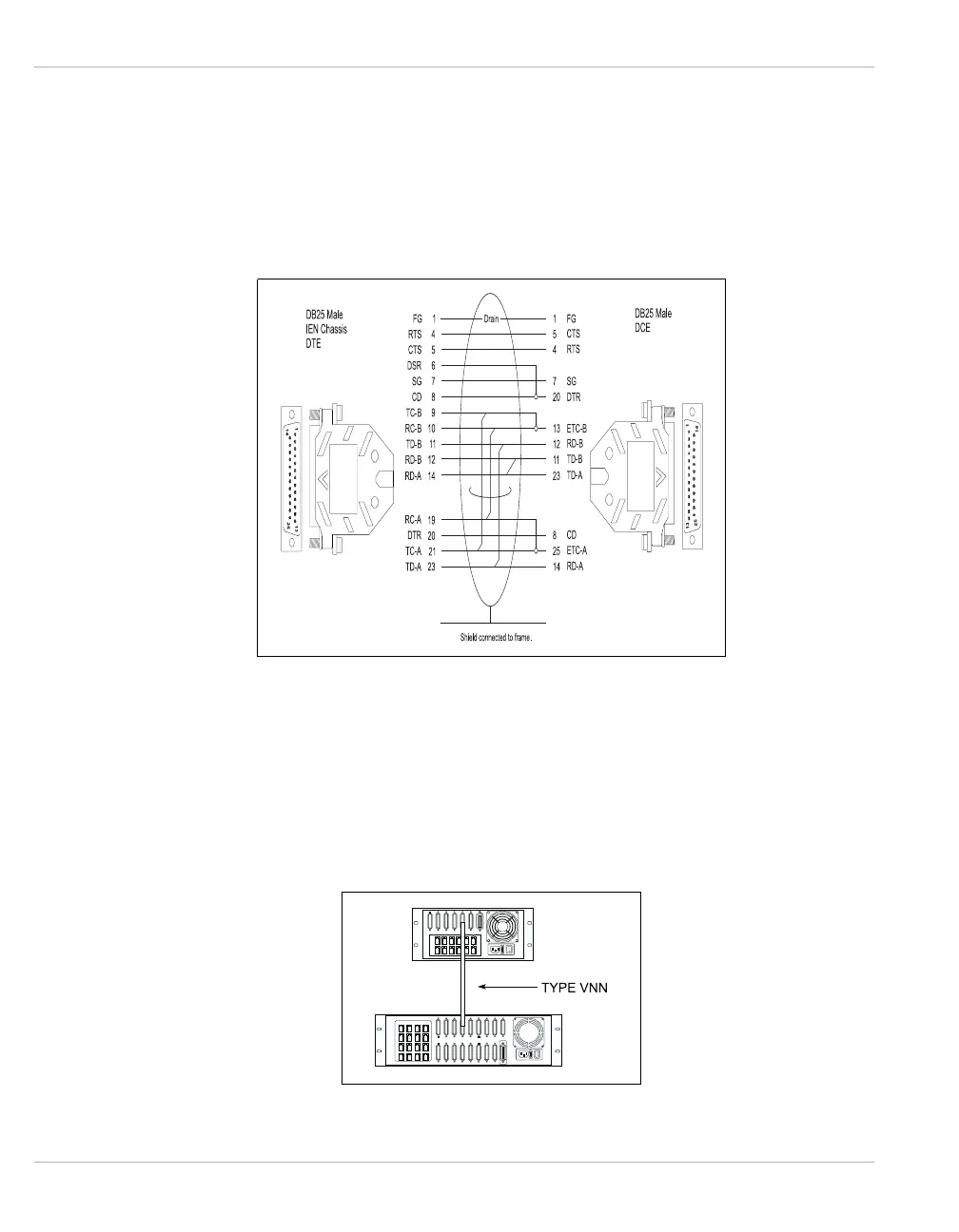 The Type VNN male DB25 connector marked as DCE must be attached to the IEN 1000,