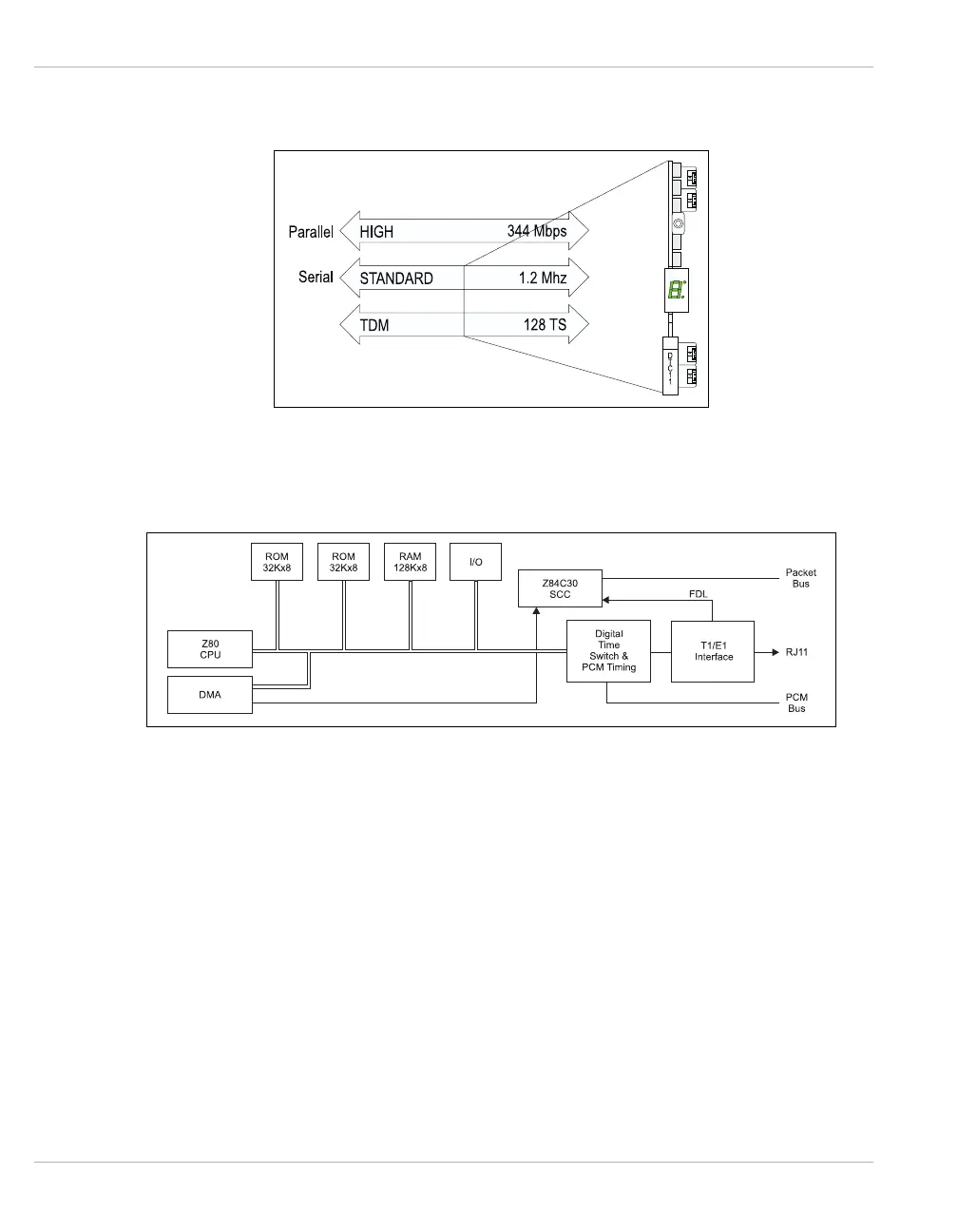 Figure 3-25 illustrates the block diagram for the DTC11-LHO/E1 port processor.