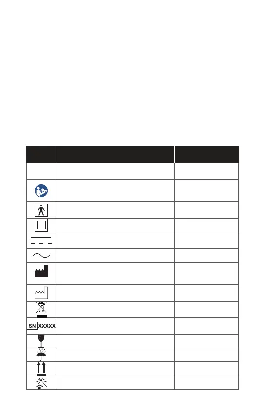 De volgende etiketten en symbolen zijn aanwezig op de bedieningseenheid, hulpstukken en/