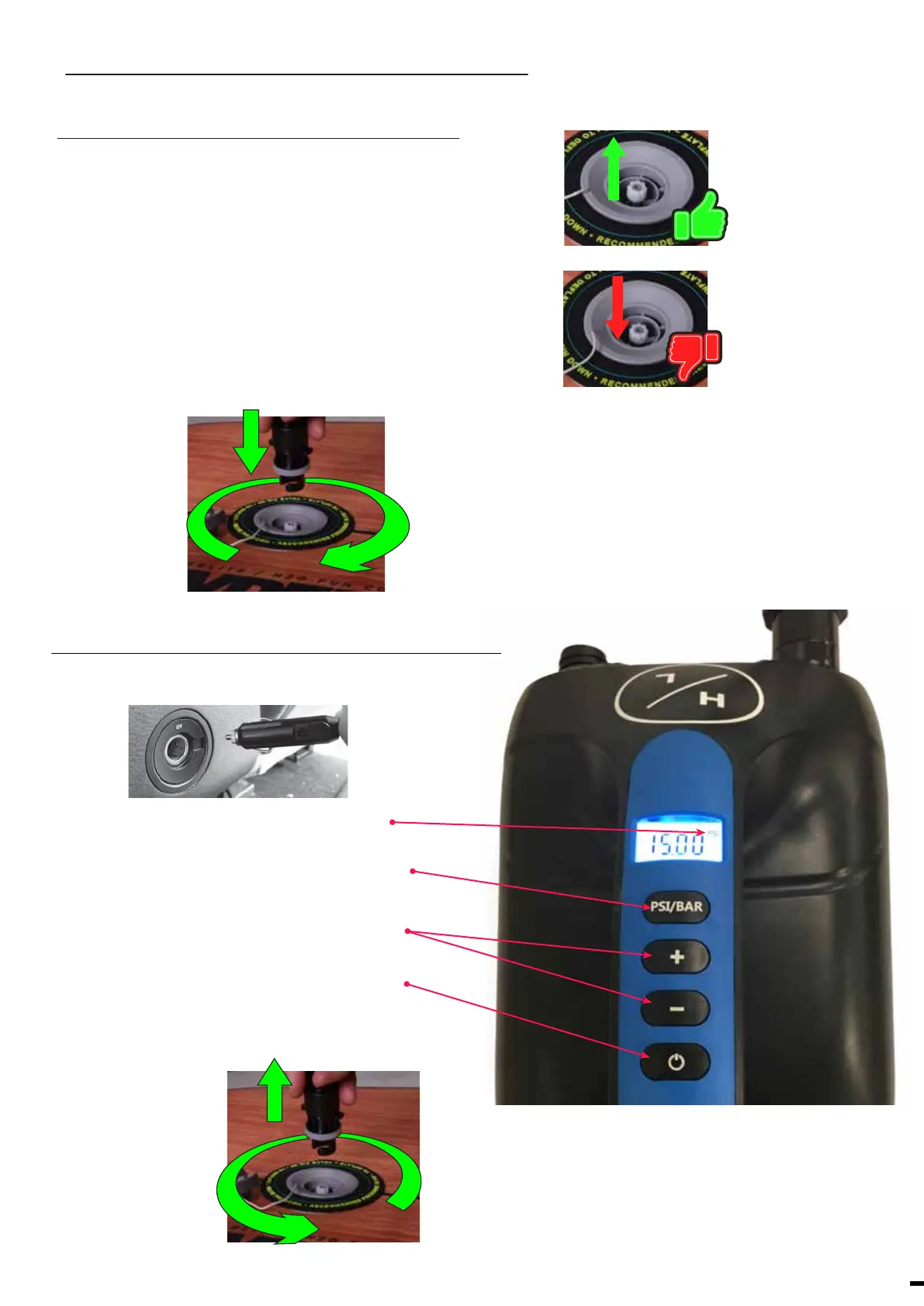 • Ajuste la presión deseada a 15 PSI (1 BAR), oprimiendo los botones “+” y “-“