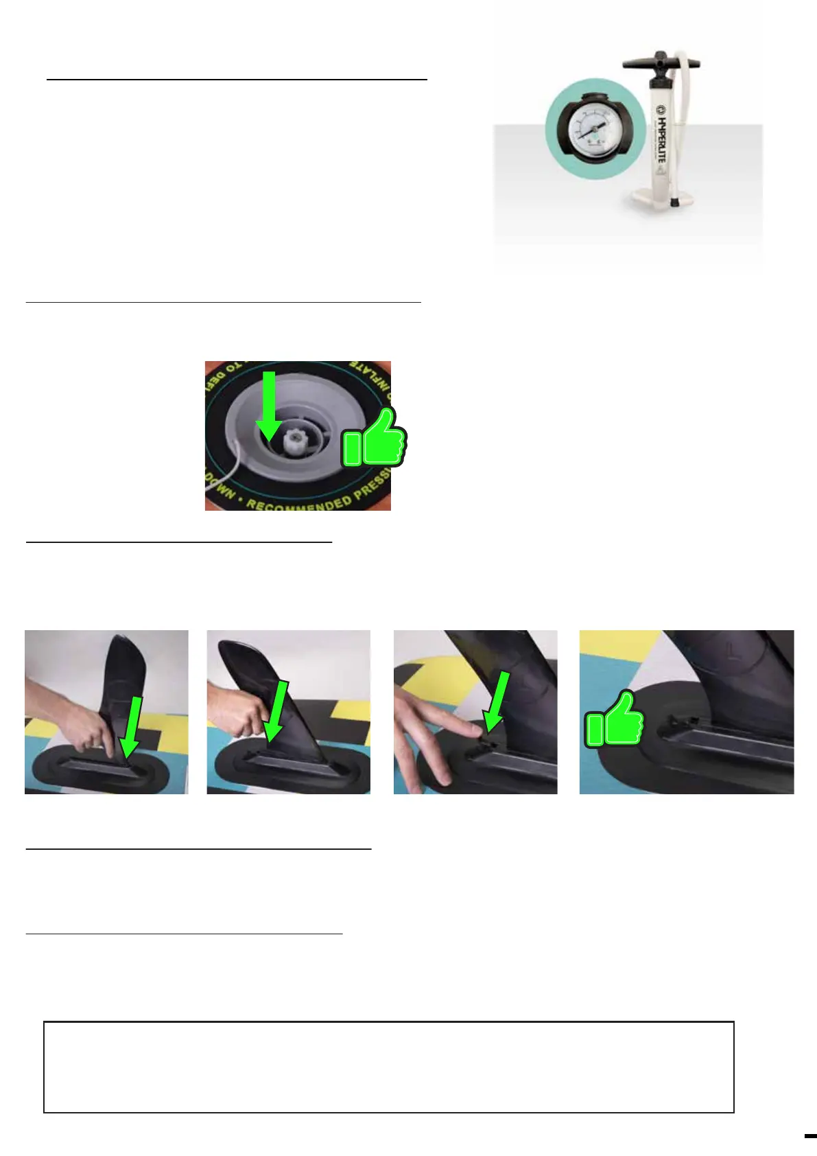 • Comience a bombear aire a la tabla de surf subiendo y bajando el mango de la bomba.