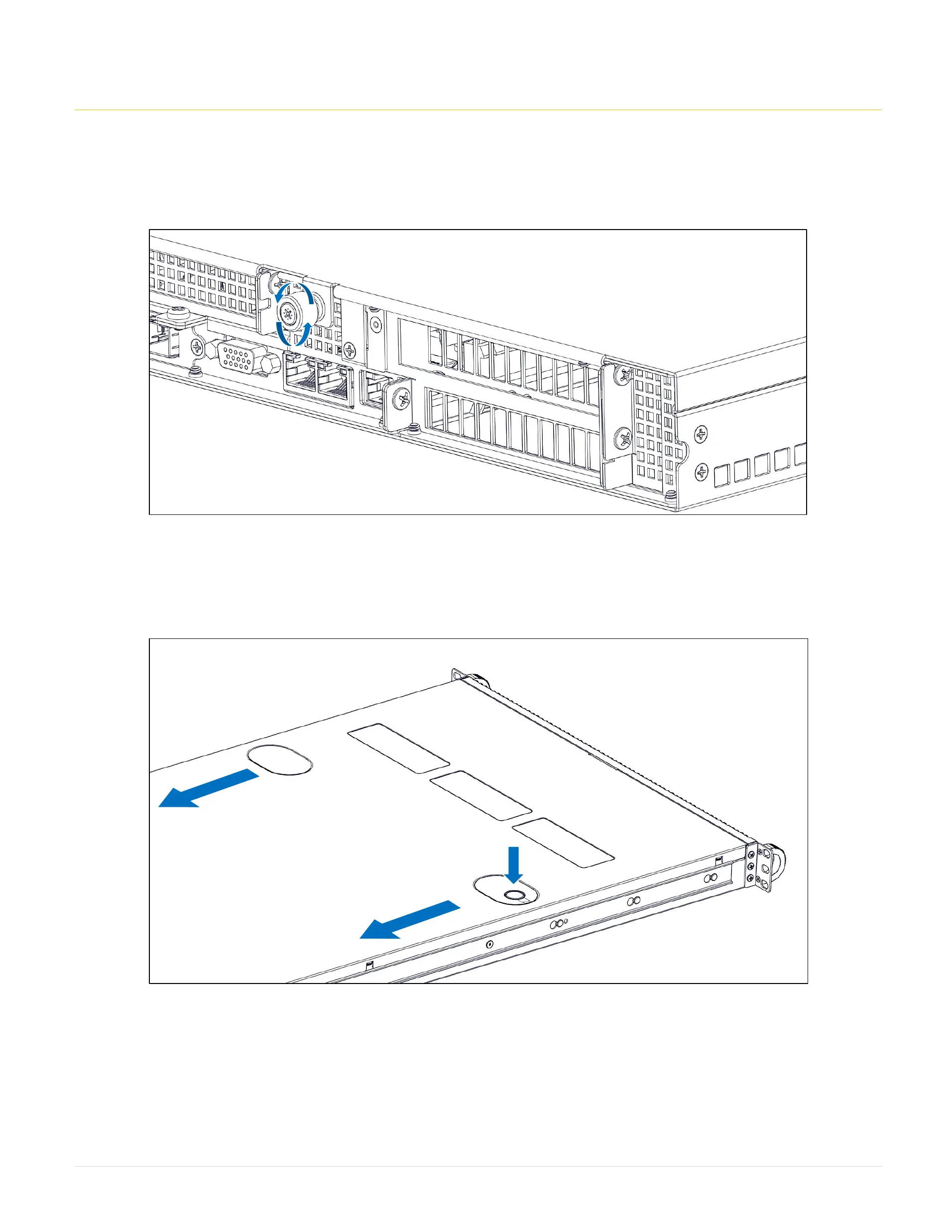 Step 2: Press the button and slide the cover towards the back of the system to release the cover.