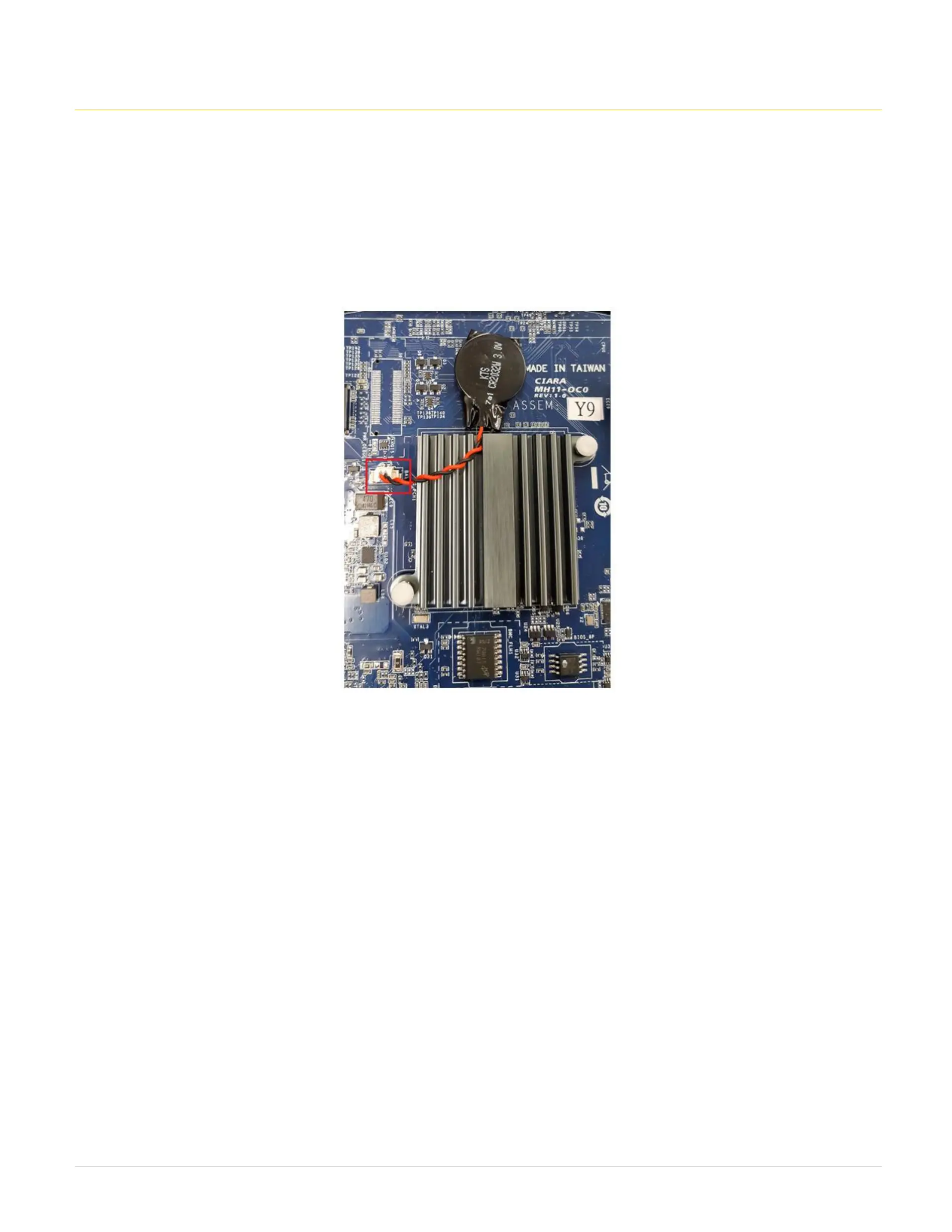 c. Remove CMOS battery connector from motherboard (Battery is held onto motherboard by sticky tape)