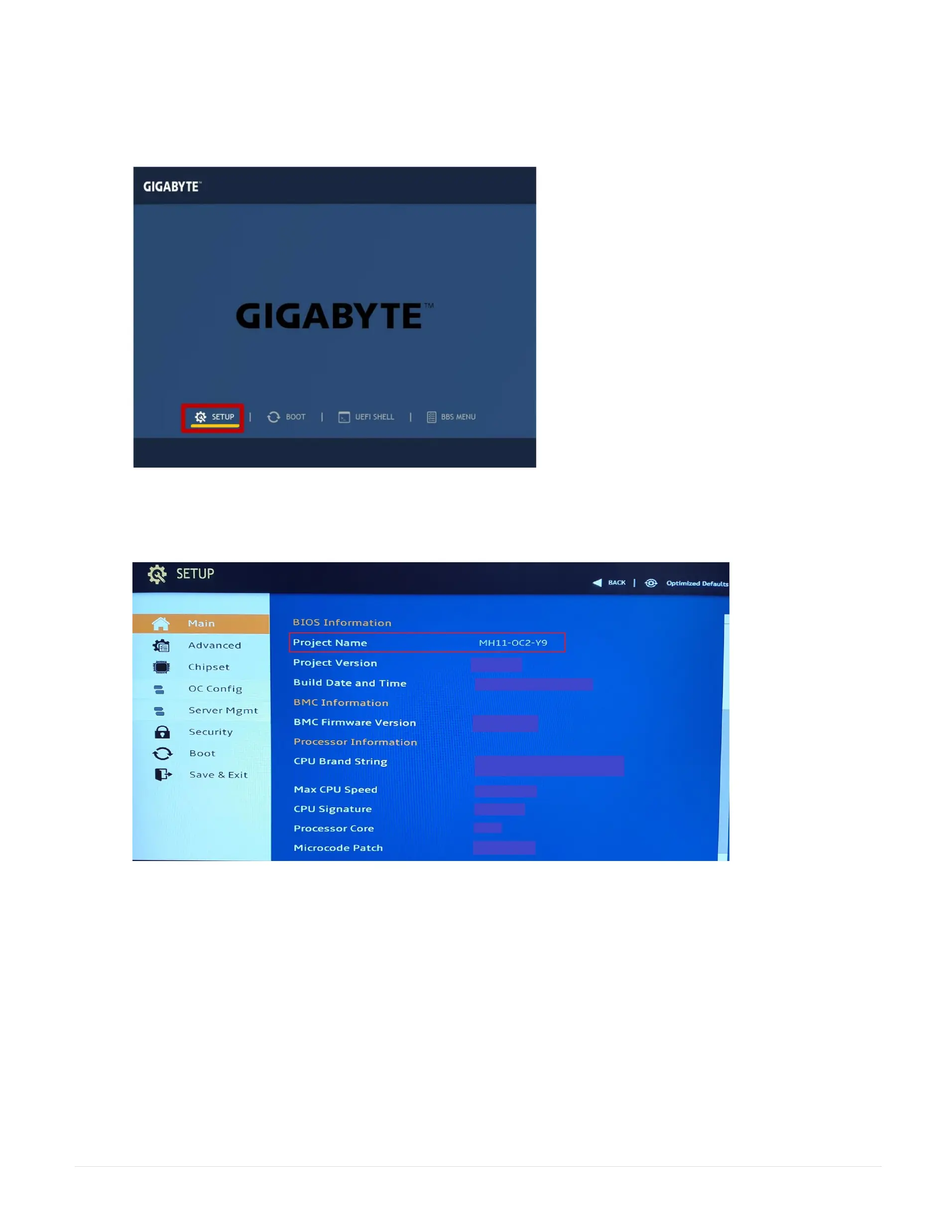 Step 4. Select the SETUP and press Enter.
