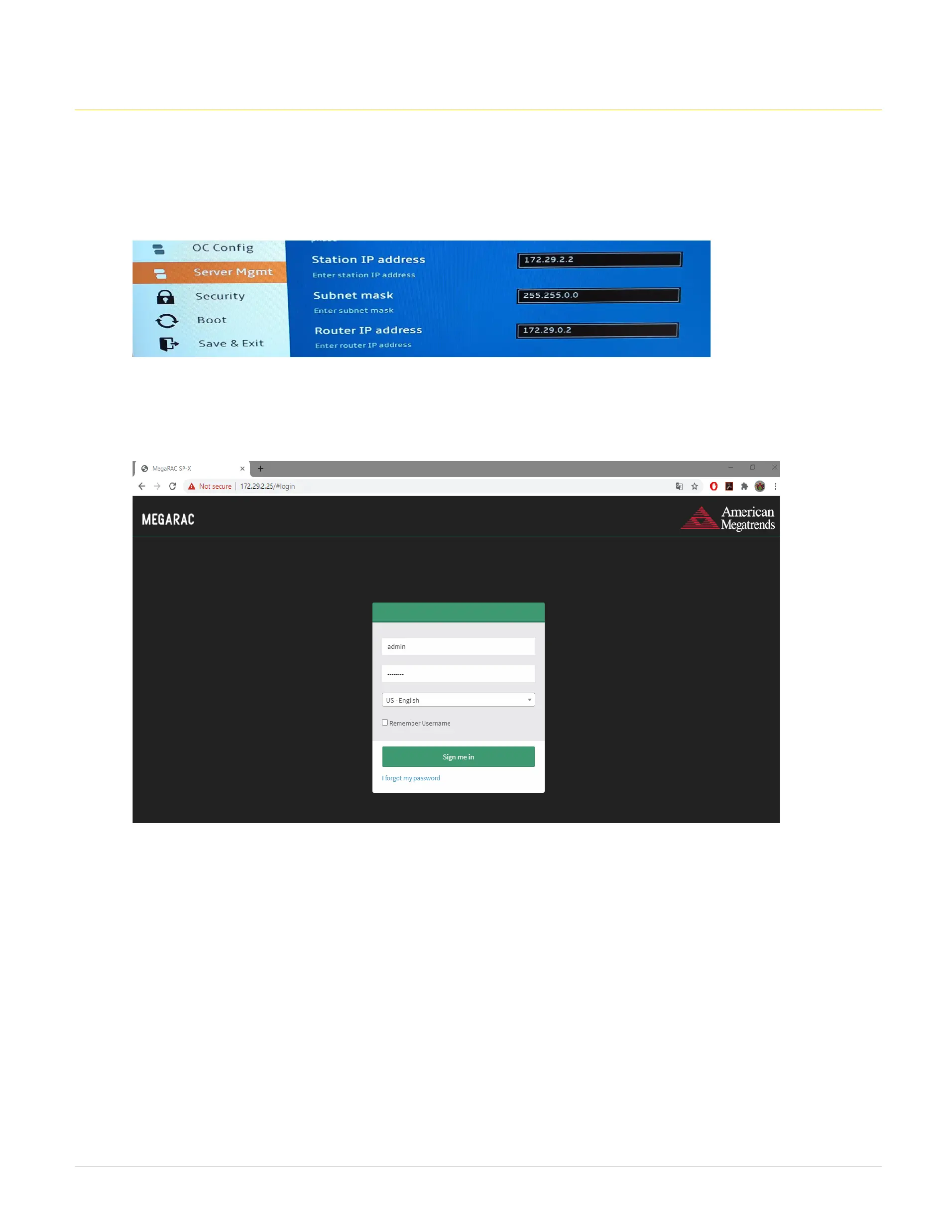 Step 2: Launch the web browser, Type the IP address of the BMC, and enter the username as admin and password as password. Then click on Sign me in.