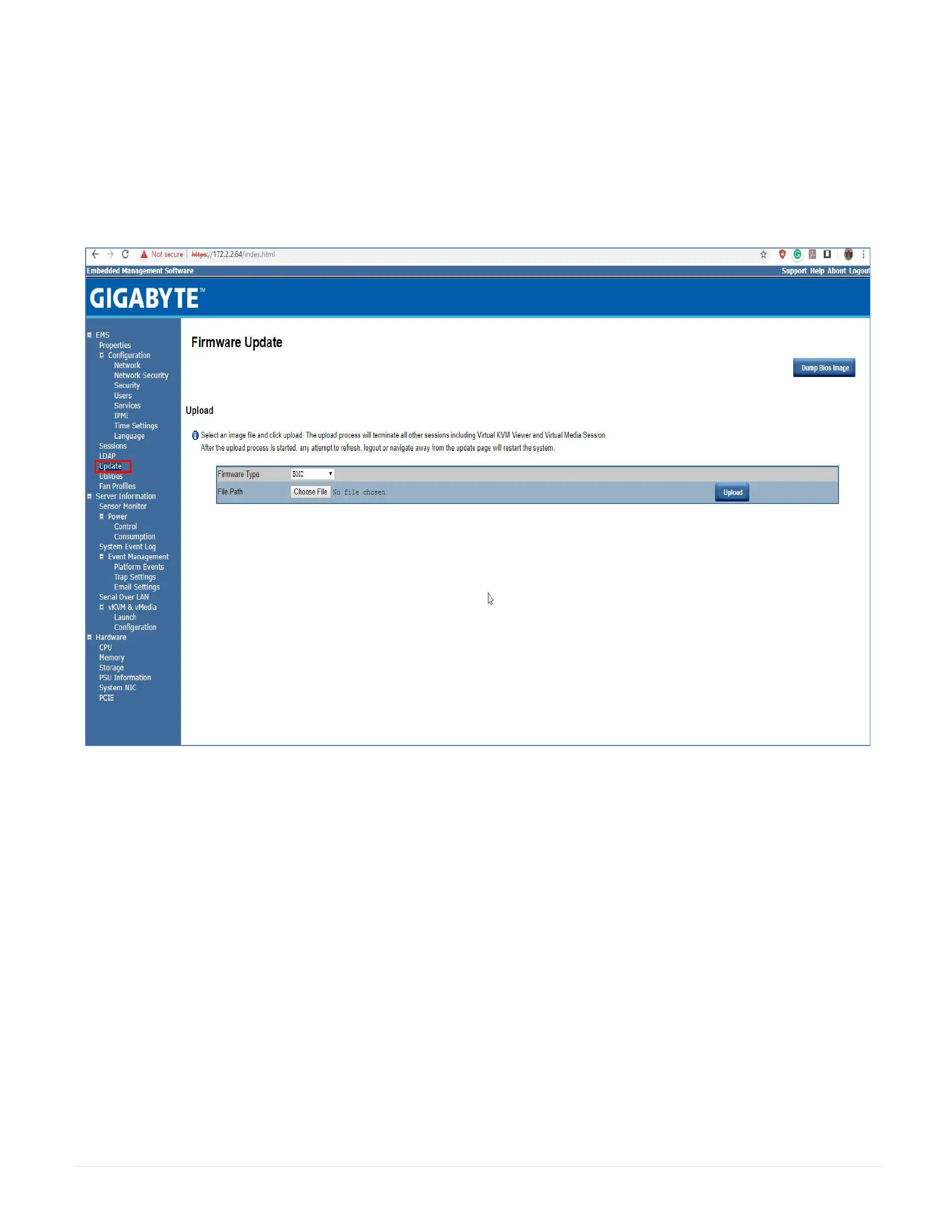 In the Updates page, the firmware can be updated remotely.