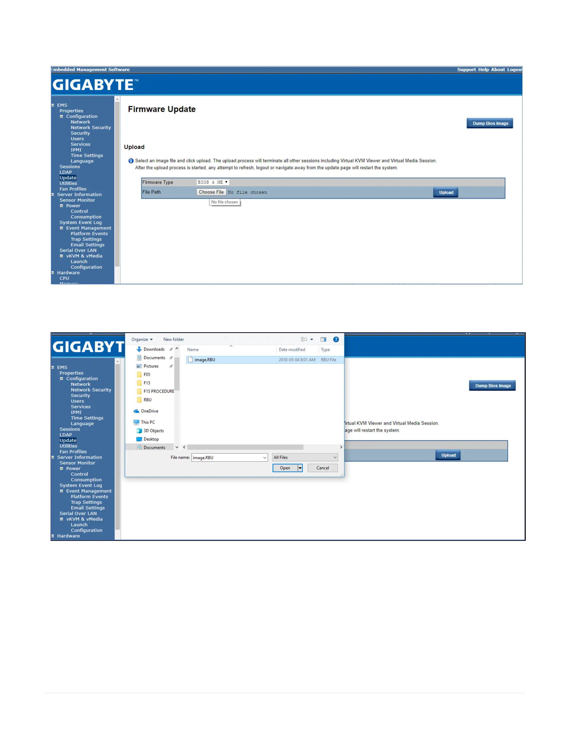 Step 13: Select the file Image .RBU from your PC and press Upload