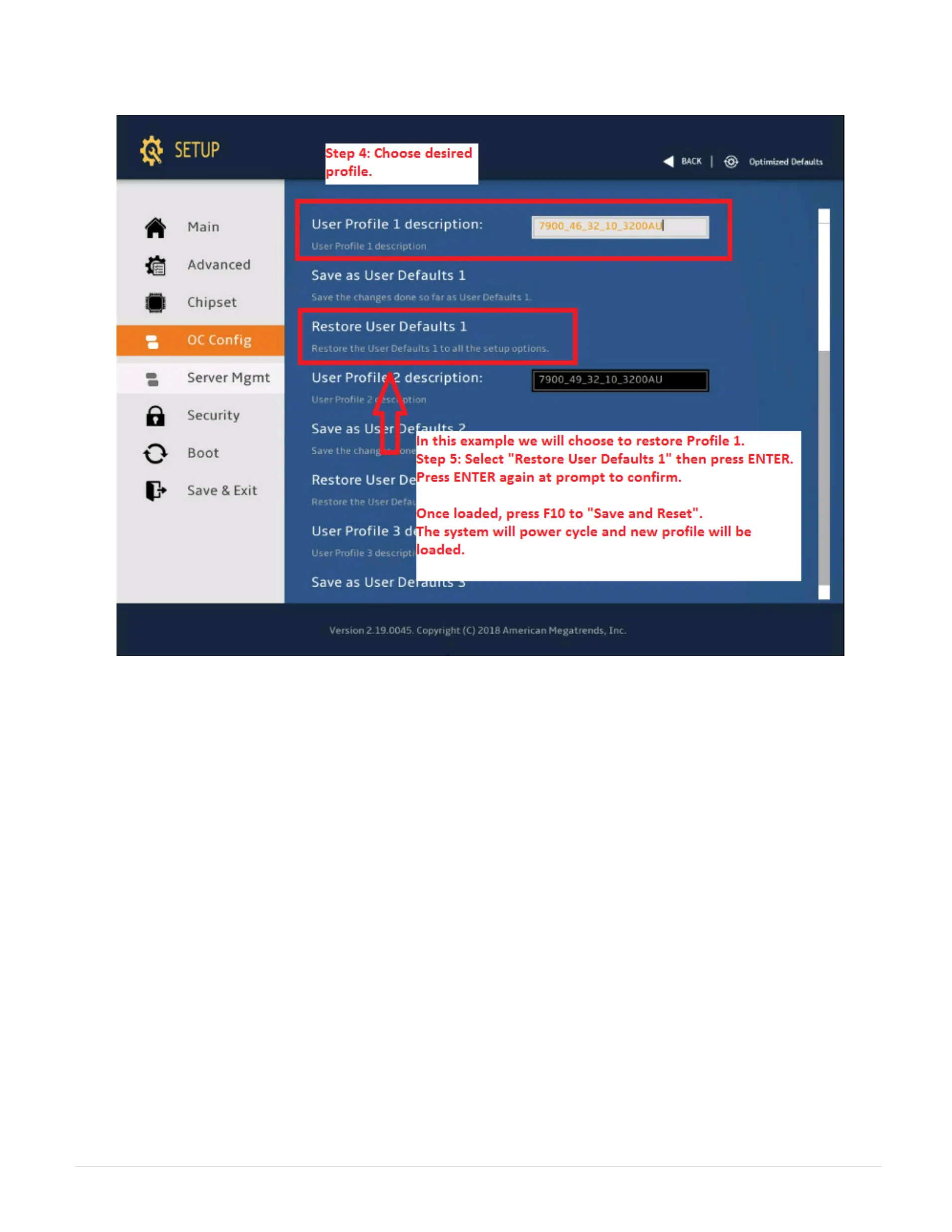 Step 3: Choose the desired profile. You should have a 48_18 and a 50_10 profiles. Restore it, and then press F10.