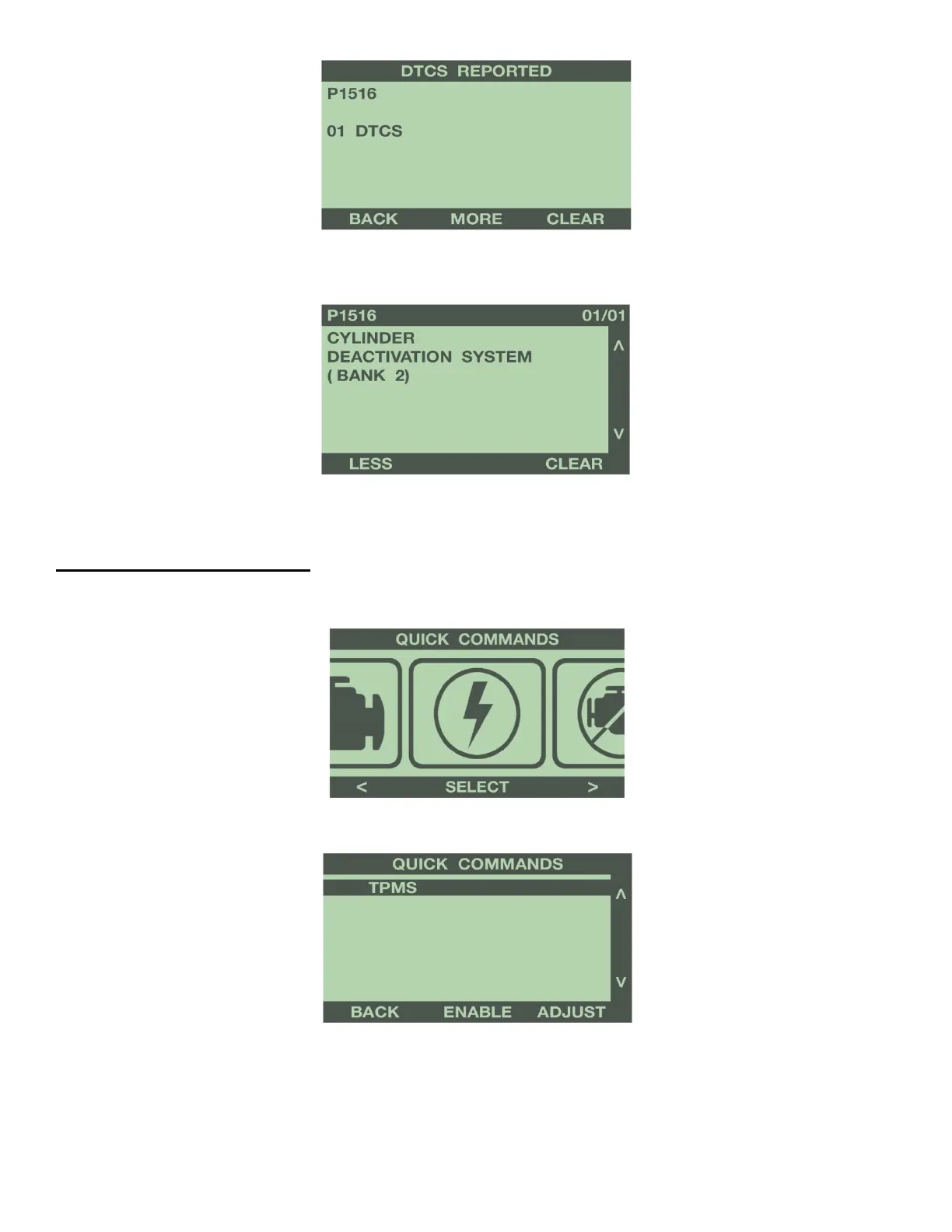 From the Main Menu, press the left or right arrow buttons to scroll for the Quick Commands menu. Press