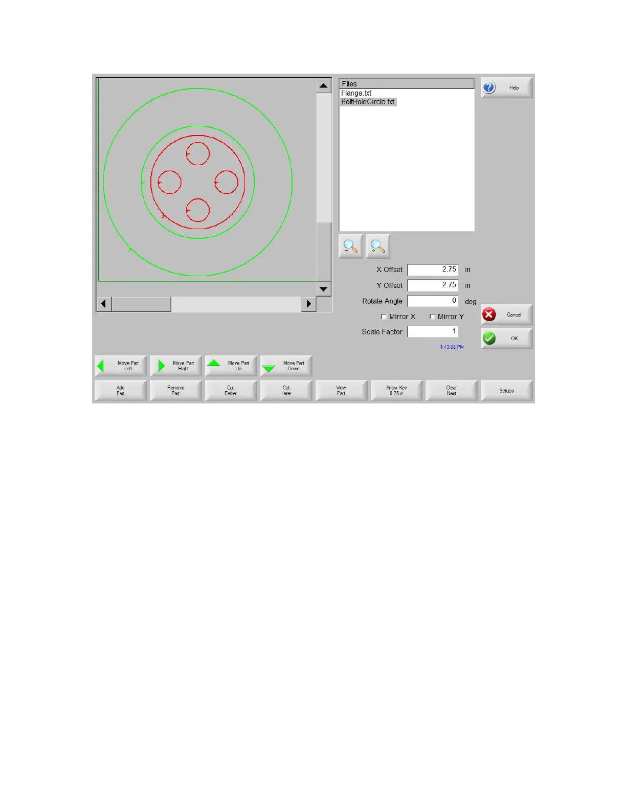 the Nester™ Part List and highlighting the file name. Then select the desired field to manually offset,