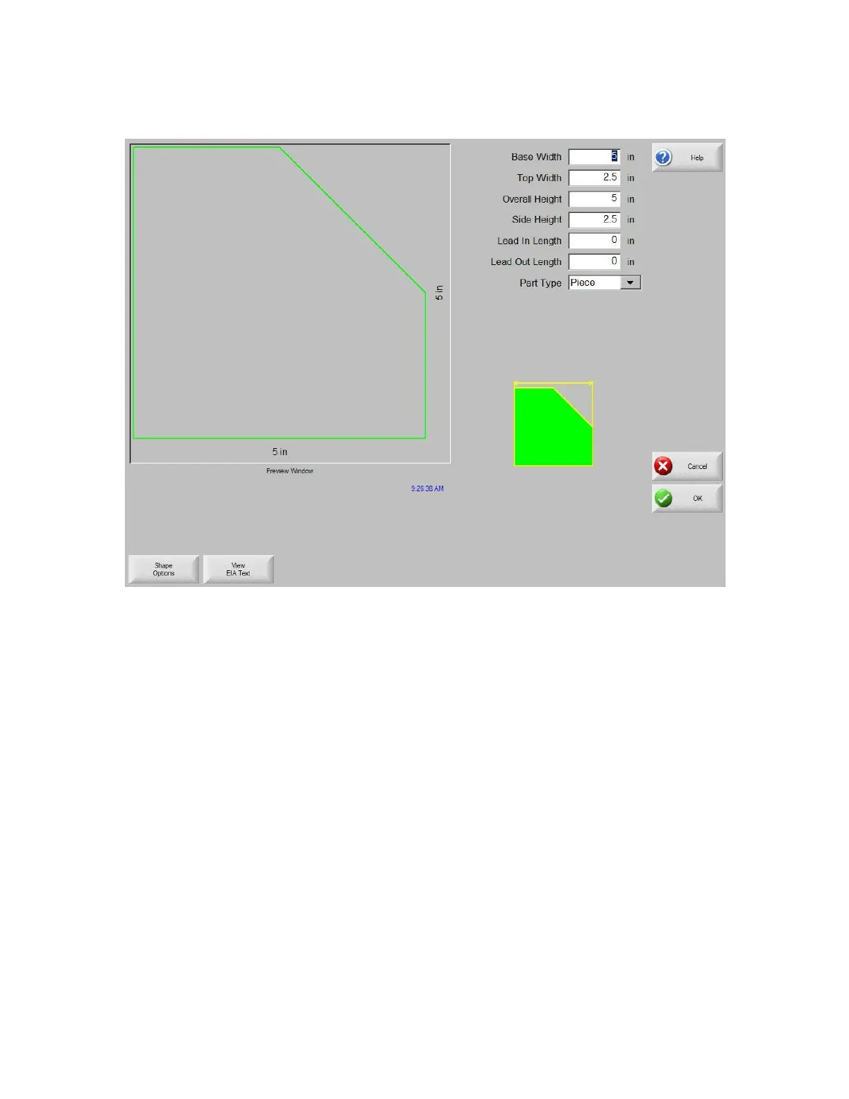 with the entered values. This is extremely useful in providing a visual check of the shape that has