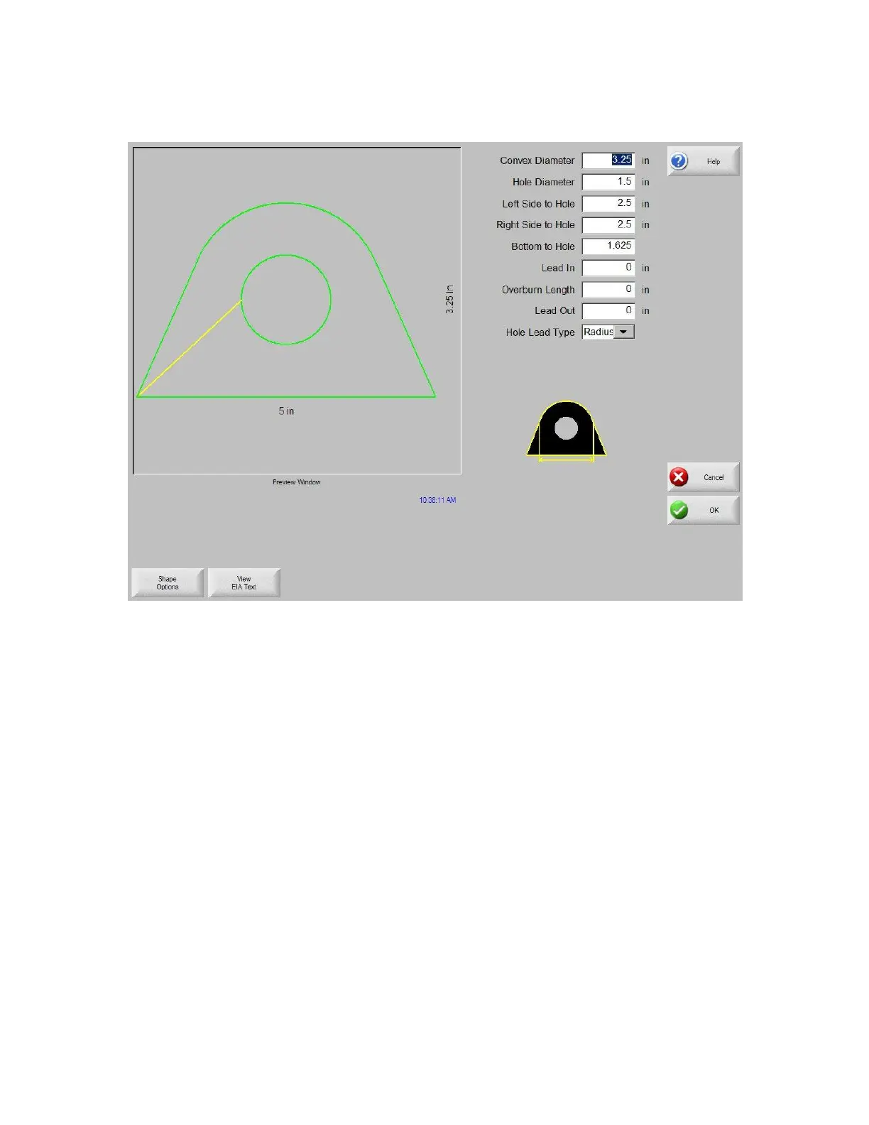 with the entered values. This is extremely useful in providing a visual check of the shape that has