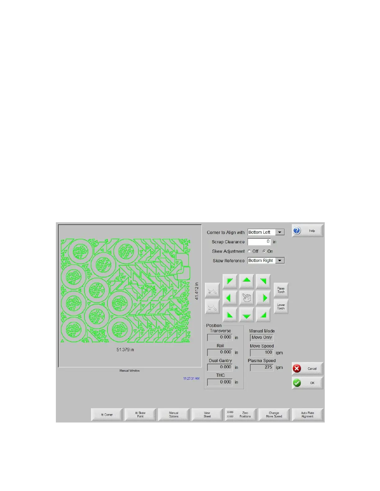 This screen is used to align the current part in memory into one of the four corners of the plate for