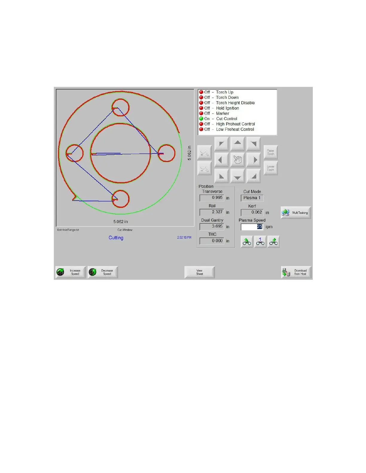 After determining that the cut mode, cut speed and Kerf values are all set correctly, a part can be cut
